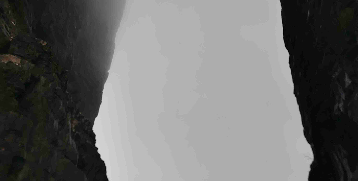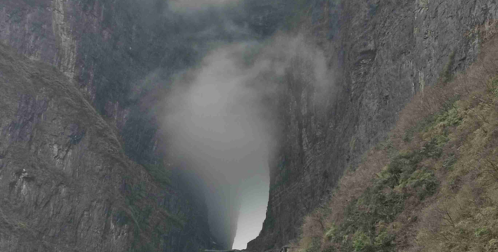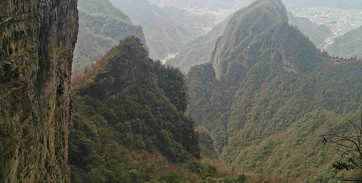鬼谷栈道全线既不在悬崖之巅,也不在悬崖之侧,而是全线都立于万丈悬崖的中间,给人以与悬崖共起伏同屈伸的感觉。