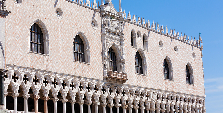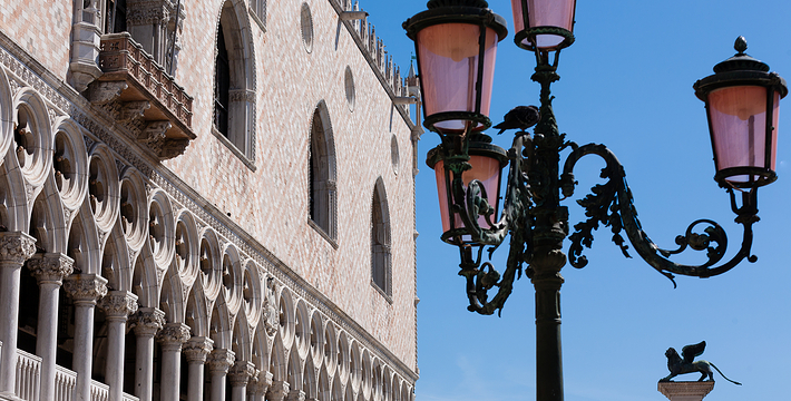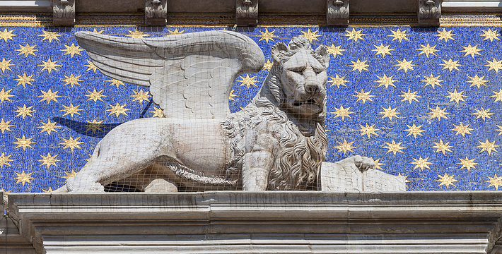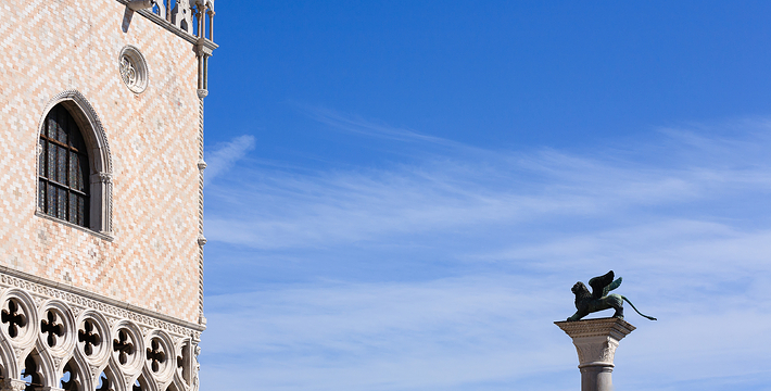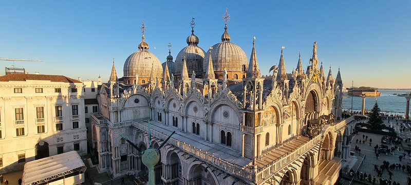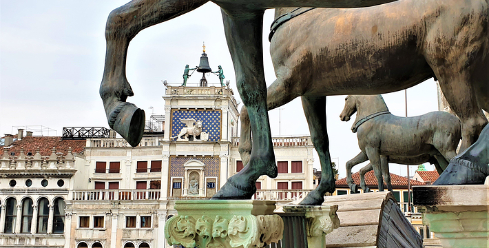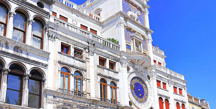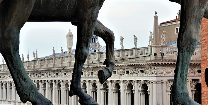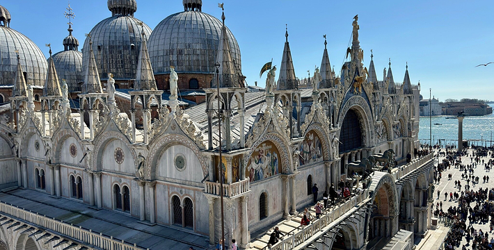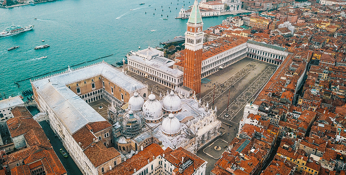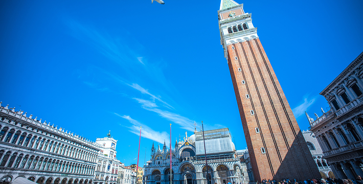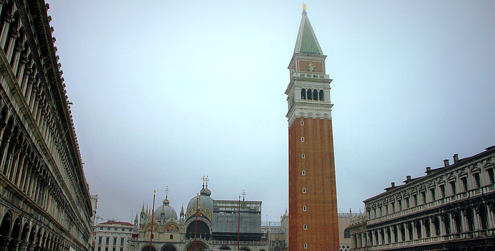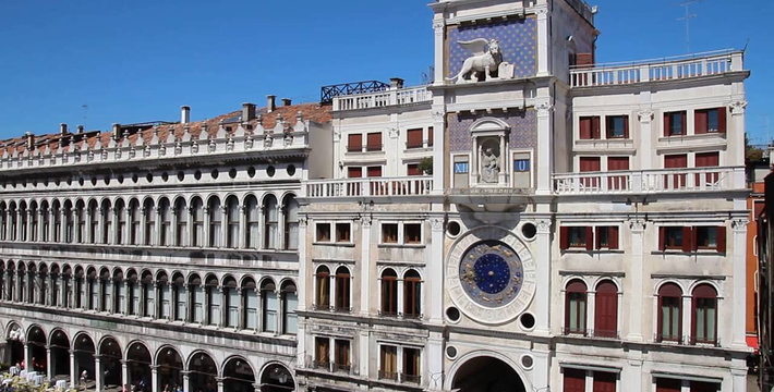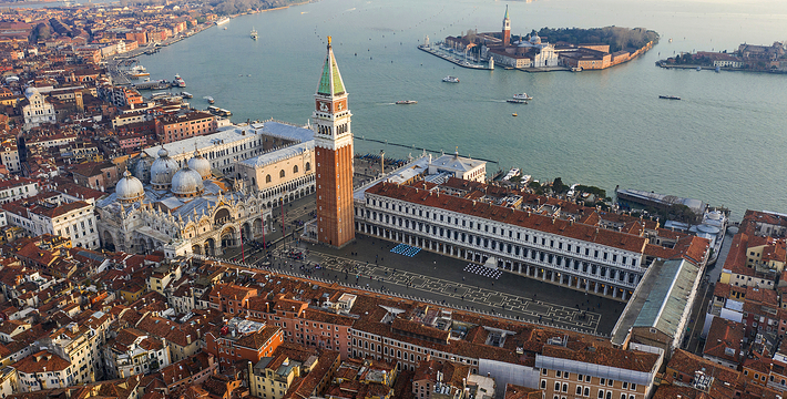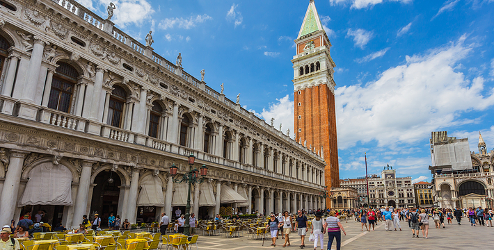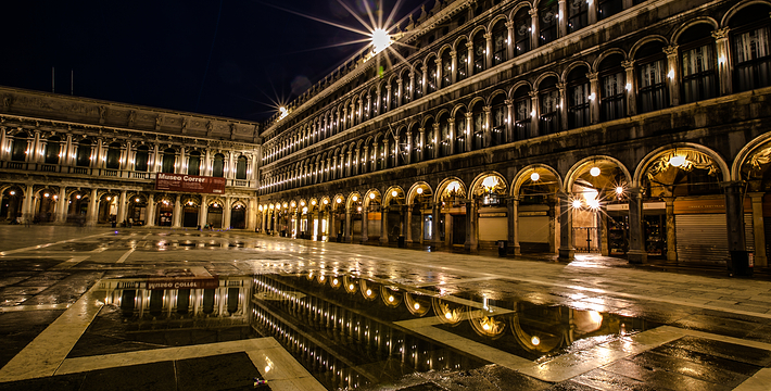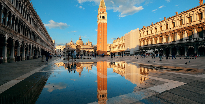 由新、旧行政官邸(Procuratie Nuove e Vecchie)及连接两大楼,位于东侧的拿破仑翼大楼(Ala Napoleonica)和东面的圣马可教堂所围成的长方形广场,在威尼斯共和国时期。所有的外国船只都由圣马可湾缓缓驶进至此、广场入口和钟塔组构而成的华丽雄伟景致。下船后在广场入口有两个高高的柱子,一个上面是威尼斯的代表“飞狮”(San Teodoro),这里是威尼斯城的迎宾入口。