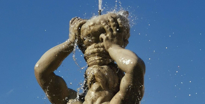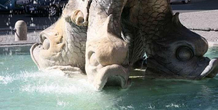 特里同喷泉是一座17世纪喷泉,作者是著名的巴洛克雕塑家济安•贝尼尼,出资人是教宗乌尔班八世。特里同喷泉建于1642–43年,其中心是一个肌肉发达的古希腊罗马神话中未成年海神特里同,人鱼形状,有四个海豚尾翼。他头部后仰,双臂举起海螺饮水,从此喷射出水流。下面有四只海豚支撑,在其鳞片的尾巴上,有教皇头饰与十字交叉的钥匙和巴贝里尼蜜蜂纹章。