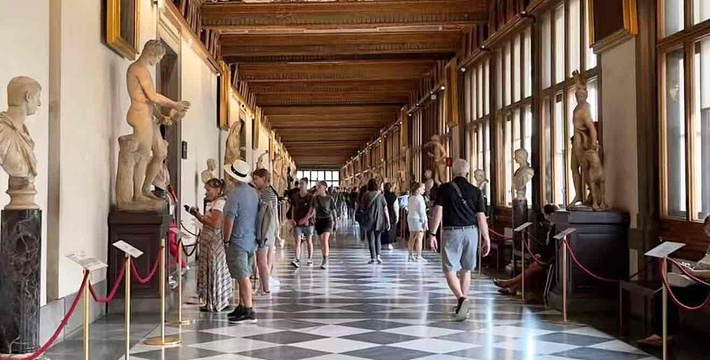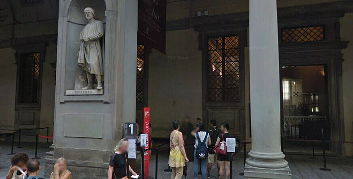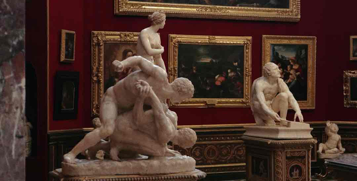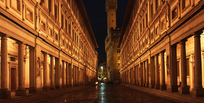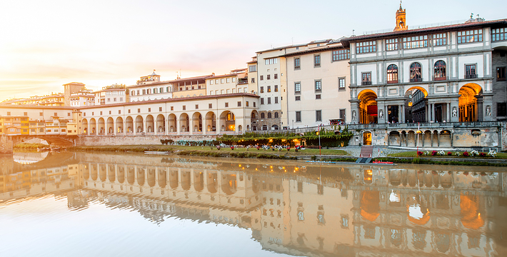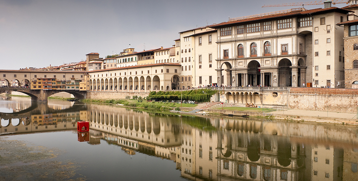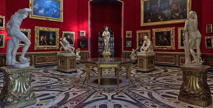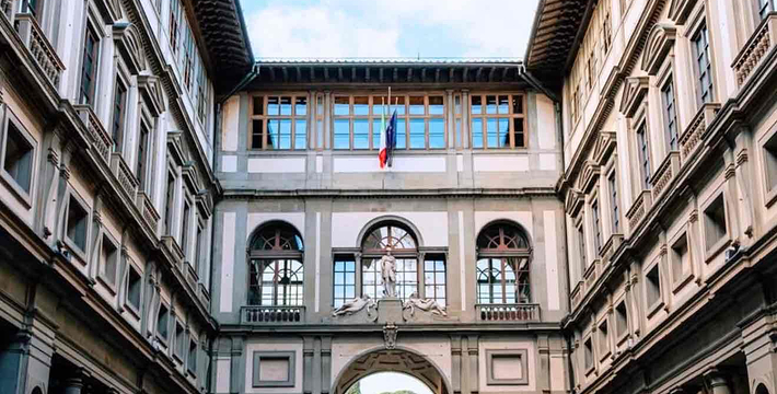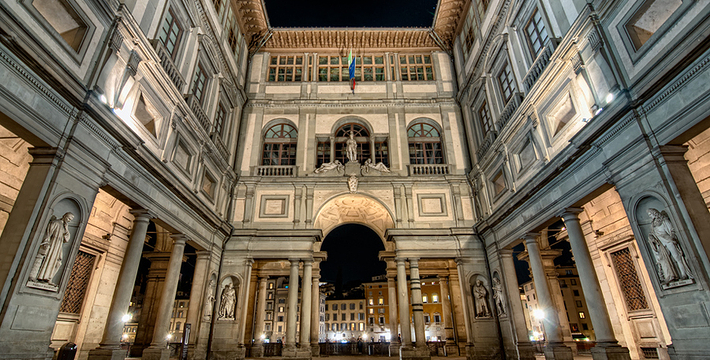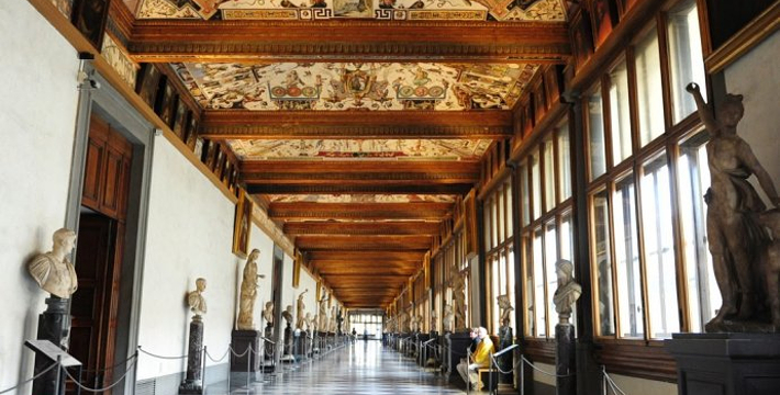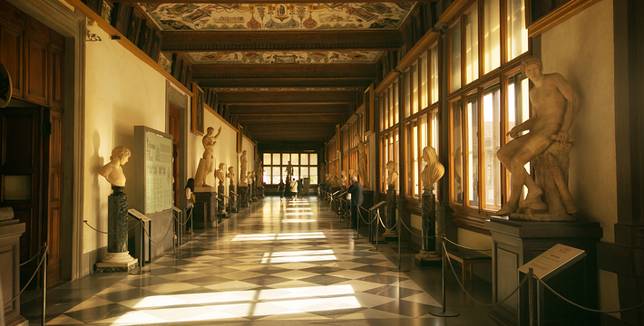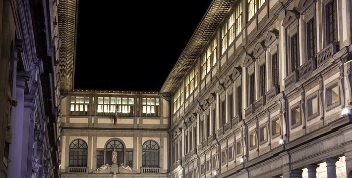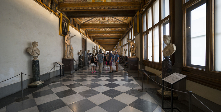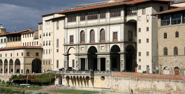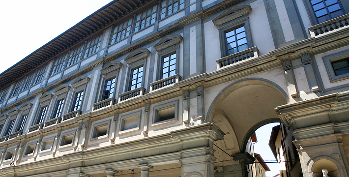 乌菲兹美术馆的兴建始于1560年。这里一开始是乔尔乔·,科西莫一世·德·美第奇所建的办公室(Uffizi和意大利语“办公室”谐音)。整个庞大的宫殿式建筑直到1581年才完工。从科西莫一世开始,美第奇家族就热衷于艺术,并一直有赞助许多大师,如达芬奇,米开朗基罗等。家族世世代代收藏的艺术品也大都安放与此·玛丽亚·美第奇在临终时留下遗言,把美第奇家族所有的藏品都捐赠给托斯卡纳政府,并作为佛罗伦萨的遗产保留下来。乌菲兹也很自然地成为了一所博物馆,并于1765年正式对公众开放。由于馆藏实在太多,一些藏品不得不转移到佛罗伦萨的其他博物馆中。比如一些有名的雕塑作品就被安放在了巴杰罗美术馆。乌菲兹从2006年开始进行扩建工程,预计2011年完工。扩建之后展馆面积将由6000平方米增至约13000平方米。使得许多过去放在储藏室里的作品得以公开展览。在1993年,一起汽车炸弹爆炸事件,造成了美术馆部分破坏Niobe厅:部分壁画被完全损毁,一些雕塑需要修复。