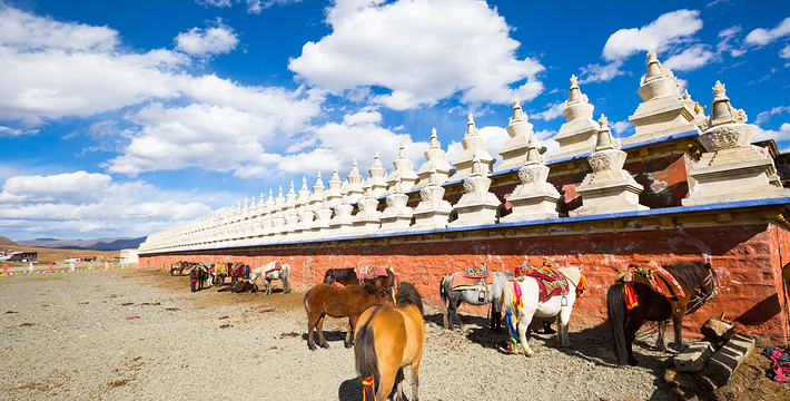 塔公寺及塔林:“塔公”藏语意为“菩萨喜欢的地方”。塔公寺是藏传佛教萨迦派著名寺庙之一,有“小大昭寺”之称,是康巴地区藏民朝圣地之一。每年寺庙都要举行一次盛大的佛事和跳神活动,寺壁挂满唐卡藏画,殿内生动地显示出寺内僧侣及民间艺人的高超技艺。藏式浮雕、彩塑、壁画及酥油制品以及造型各异的浮屠古塔林,具有十分独特的民族宗教文化特色。