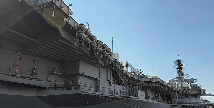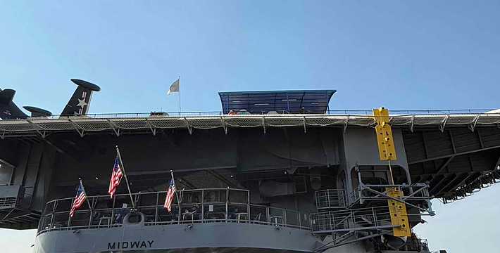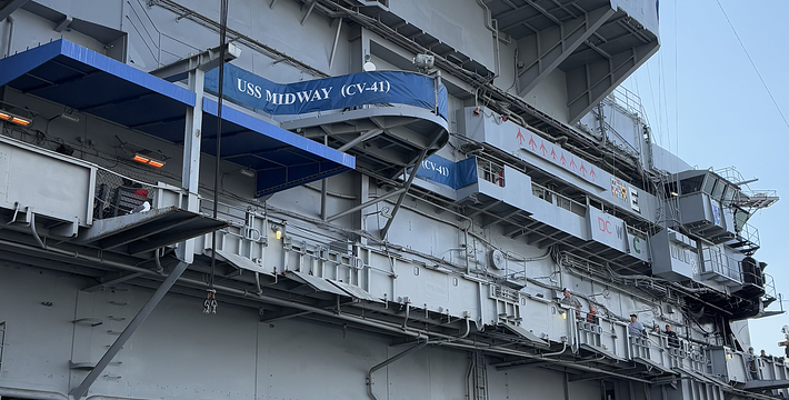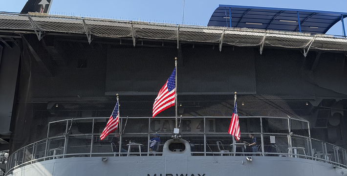 中途岛号航空母舰曾是美国海军的一个标志,是美国海军中途岛级航空母舰的首舰。她在1943年开始建造,1945年下水服役,到1992退出舰队序列,1997年正式退役,整整经历了42年的军旅生涯。她参与了40年代的二次世界大战,60,70年代的越南战争,以及90年代的沙漠风暴行动等多项美国海军的军事活动。 2004年,由非盈利机构接管并开放成为博物馆。游客可以参观这艘庞然巨物的舰桥,飞行甲板,飞机库,航空交通管制台,战略指挥中心,机房,官兵宿舍,海军司令和舰长的寝室等各种设施。