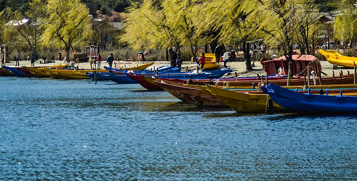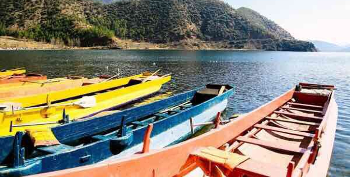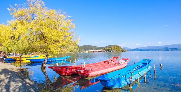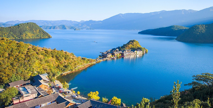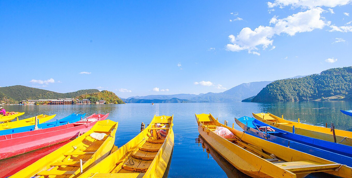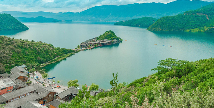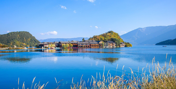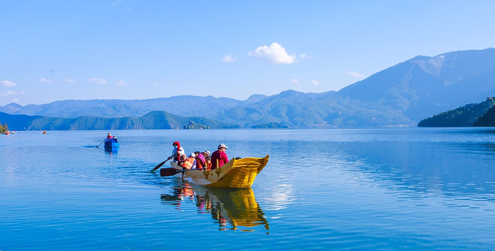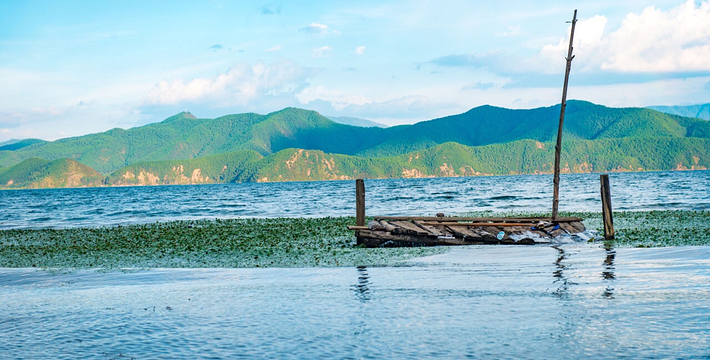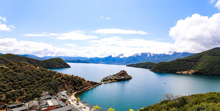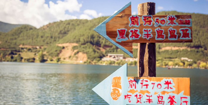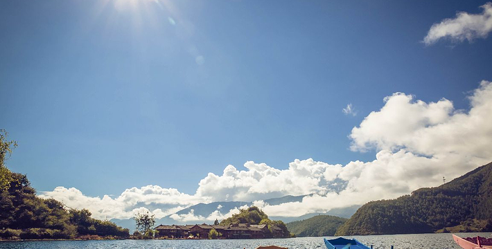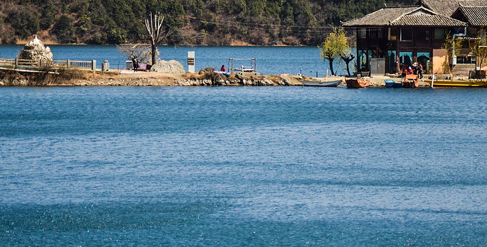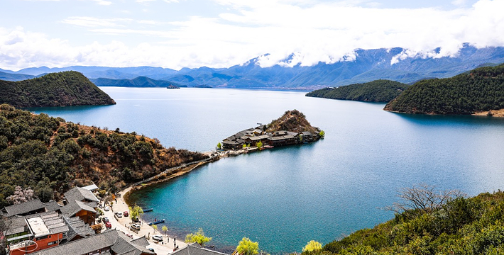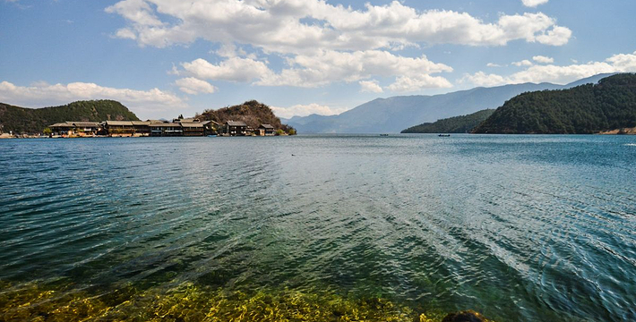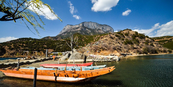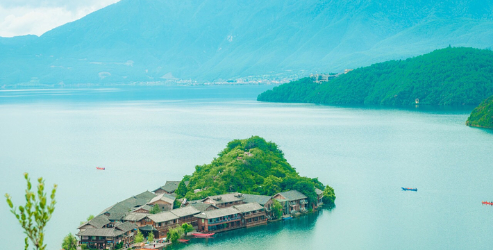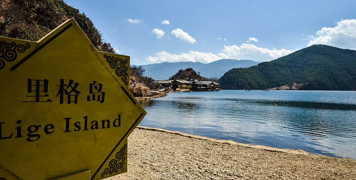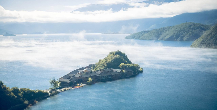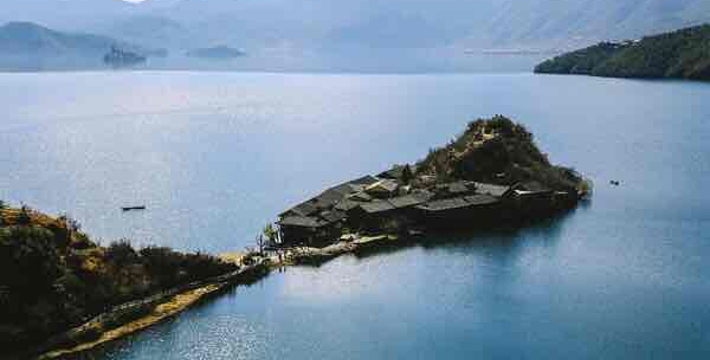 里格半岛位于泸沽湖的北侧,东西南三面环水,北面是与陆地接壤的一条小路,只有2米宽,走完小路就是一个白色的转山包,当地居民会从转山包的左侧进岛,然后会从转山包的右侧出岛,这样走就相当于绕着转山包转了一圈。岛上除了有当地居民几百年的古老住所,另外还分布着几家景色很棒的临湖客栈,一个村民自用的小码头就在这2米多宽的接壤道路旁边。早晨的里格半岛很神秘,被晨雾所围绕,从岛外看起来若隐若现,宛如仙境。