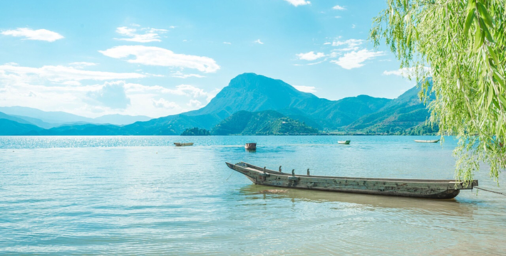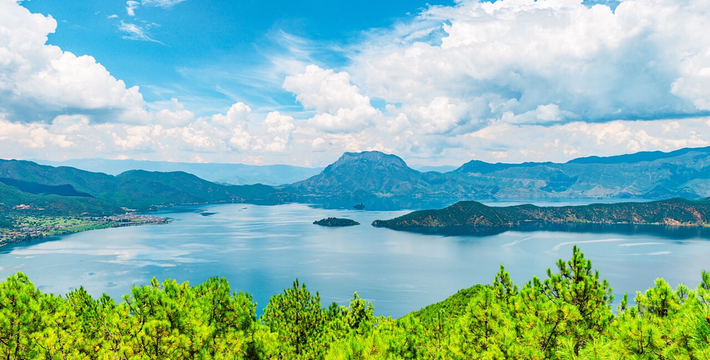 泸沽湖水美,泸沽湖岸山也秀。群山之中尤以格姆山为人们喜爱。她雄伟高大,状如雄狮在湖边蹲伏静息。狮头面湖,还指得出口耳鼻眼,使人越看越觉惟妙惟肖。人们常称呼它为狮子山,认为山顶上茂密的森林是它的黑发,山腰上的白云是它头上的轻纱,泸沽湖是它的银面盆,五彩的永宁坝子是它的罗裙。还传说山上有一位“格姆”女神,她保护着山下各族人民的平安幸福。
