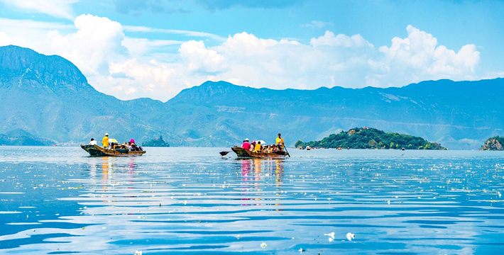 格姆女神山屹立于泸沽湖北面,当地又称狮子山。摩梭语称“格姆”,藏语称“森格格姆”,“森格”意为狮子,“格姆”意为白色女神。摩梭人把格姆山神化,看作是女性的化身,顶礼膜拜,每年的农历七月二十五日,全民祭祀女神,作为隆重的节日,已有一千多年的历史。