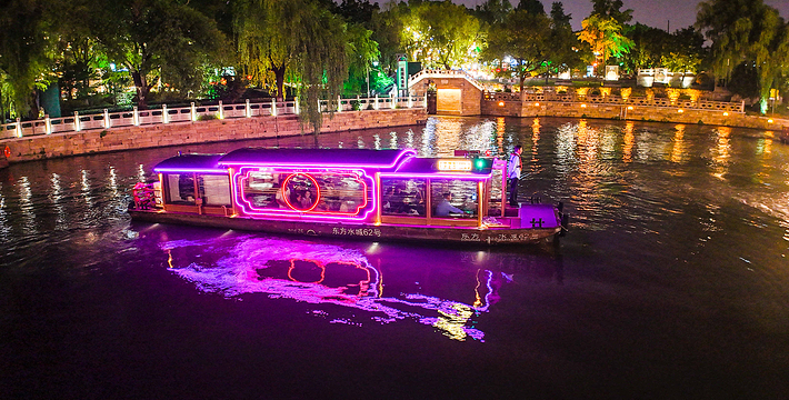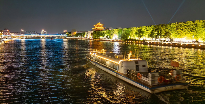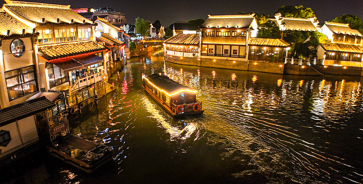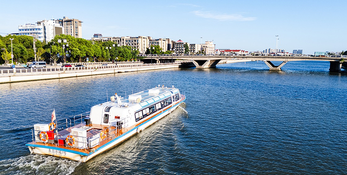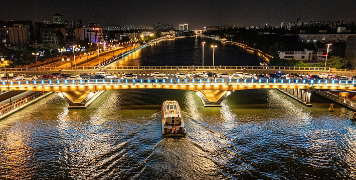 在枫桥堍游船码头,游客可乘坐古画舫,在古运河上饱览古桥、古关、古镇、古寺的清幽景色,坐船畅游,聆听古寺钟声,让你真正领略《枫桥夜泊》的诗情画意,还可从水路到达虎丘、盘门三景、西园寺等旅游景点。人在船中,看着充满诗情画意的湖光山色,思绪早飘到了轻轻荡漾的绿绿柔波中。脑海中满是古时江南采莲的姑娘在船上嬉笑吟唱的画面。“竹喧归浣女,莲动下渔舟”,呵,好令人倾倒心醉的境界,真是景不醉人人自醉……船行时间很短,大约只有一刻钟。离船上岸时,忽想起《天龙八部》中的一段情节:从云南大理初来江南的段誉,去姑苏慕容复的燕子坞时,碰到了伶俐乖巧的丫鬟阿碧。阿碧送他们一行人去“听香水榭”时,告诉他要走“四九水路”。段誉不明其意,阿碧笑解道:“一九是九里,二九十八里,四九就是三十六里。”