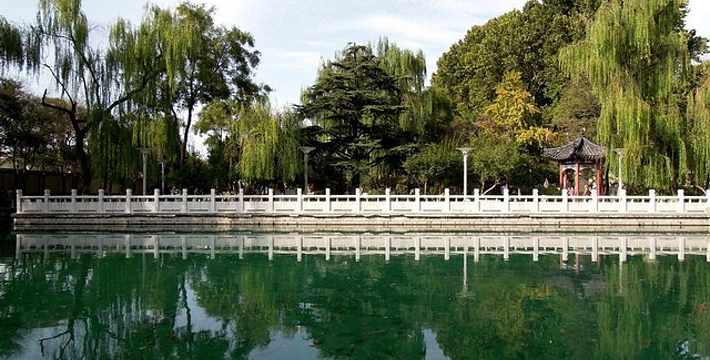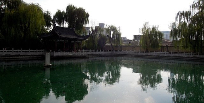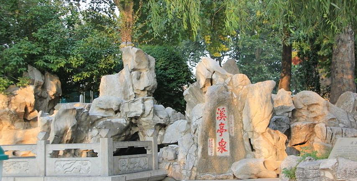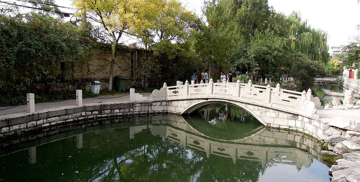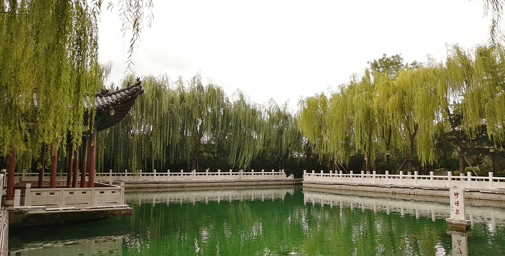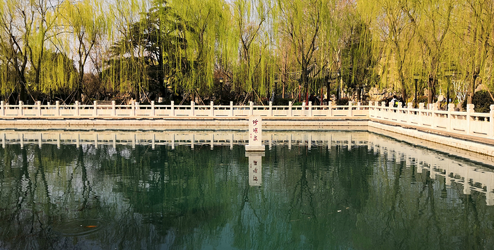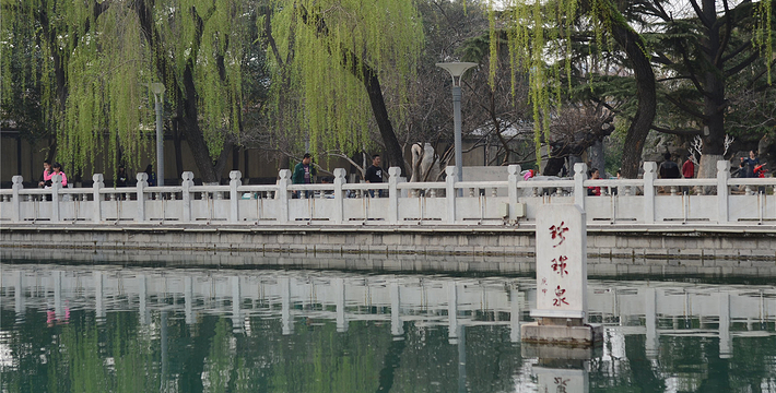 珍珠泉为济南第三大名泉,位于济南旧城中心,位于今泉城路珍珠泉礼堂内北面。“珍珠泉”匾额为乾隆皇帝御笔亲题,也是一处闻名天下的独特景观。在它周围有许多小泉,如楚泉、溪亭泉、舜泉、玉环泉、太乙泉等,被称为珍珠泉泉群。珍珠泉泉池长42米、宽29米,周围砌以雪花石栏,岸边杨柳轻垂,泉水清澈如碧,一串串白色气泡自池底冒出,仿佛飘撒的万颗珍珠,迷离动人;泉的西北角有濯缨池,是由泉水汇聚而成,泉水向北流经百花注洲后进入大明湖。珍珠泉区为一座清雅的庭园,松柏苍翠、杨柳低垂,泉池楼阁错落有致;园内罗锅桥西侧,有一株高五、六米的宋代海棠,至今有千年的历史,相传是济南太守曾巩所栽。另外,在珍珠泉北边新建了一座人工湖,砌假山、植苍松,别具一番特色。清代王昶《珍珠泉记》云:“泉从沙际出,忽聚忽散,忽断忽续,忽急忽缓,日映之,大者为珠,小者为矶,皆自底以达于面。”人们形容这里的景观是"跳珠溅雪碧玲珑"。附近还有散水泉、朱砂泉、腾蛟泉、溪亭泉等十一处泉水。