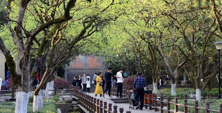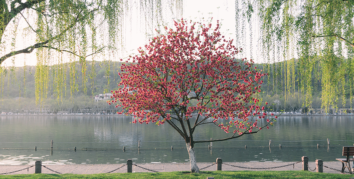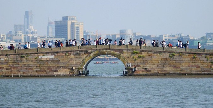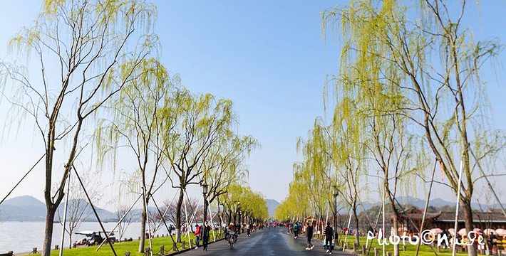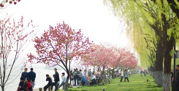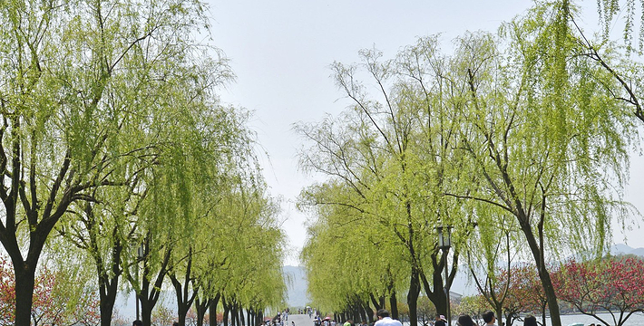 后来,人们以为这条堤是白居易主持修筑的,就叫它“白堤”。实际上白居易任杭州刺史时,曾在旧日钱塘门外的石涵桥附近修筑了一条堤,称为“白公堤”,如今已经无迹可寻了。白堤旧日以白沙铺地,今已改为柏油路面,两侧花繁树茂,有绚丽多彩的碧桃,有婀娜多姿的垂柳,明代王稚登的《十锦塘》诗,将堤上景色渲染得十分闹:“湖边绿树映红阑,日日寻芳碧水湾。春满好怀游意懒,莺撩吟兴客情闲。波中画舫樽中酒,堤上行人岸上山。