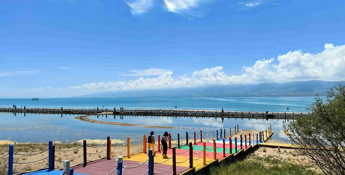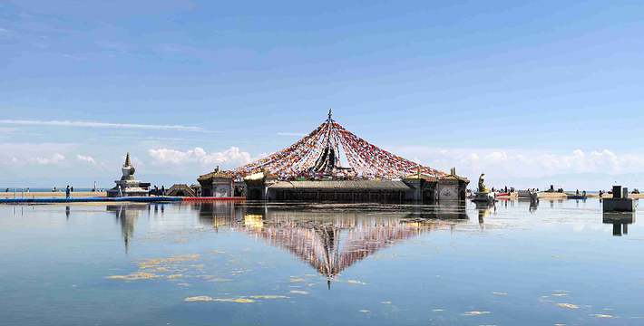 青海湖又名“措温布”,即藏语“青色的海”之意。它位于青海省西北部的青海湖盆地内。由祁连山的大通山、日月山与青海南山之间的断层陷落形成。青海湖长105公里,宽63公里,湖面海拔3196米,地处青藏高原的东北部,西宁市的西北部,位于东经99°36′~100°16′之间,北纬36°32′~37°15′之间。湖的四周被四座巍巍高山所环抱:北面是大通山,东面是日月山,南面是青海南山,西面是橡皮山。这四座大山海拔都在海拔3600~5000米之间。青海湖面积达4456平方公里,环湖周长360多公里,比著名的太湖大一倍还要多。湖面东西长,南北窄,略呈椭圆形。青海湖水平均深约21米多32.8米,蓄水量达1050亿立方米,湖面海拔为3260米。离西宁约200公里。湖区有大小河流近30条。湖东岸有两个子湖,一名尕海,面积48平方公里,系咸水;一名耳海,面积8平方公里,为淡水。