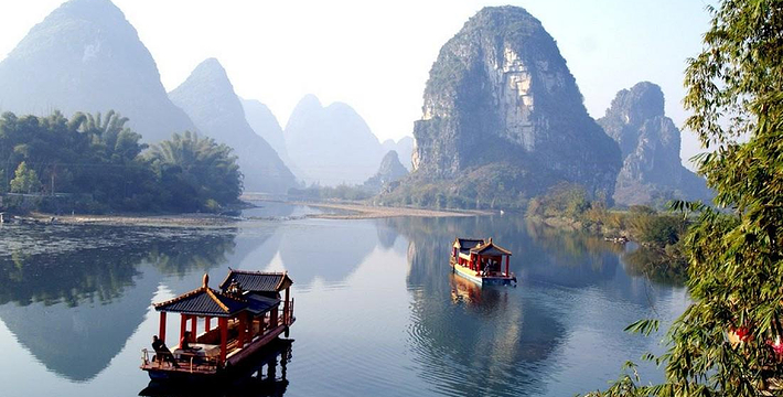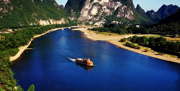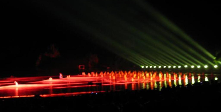 景区从刘三姐歌圩至福利古镇、普益乡,漓江两岸景点密集:码头对岸“群龙迎宾”、天鹅山下曹邺读书岩、行至漓江大桥,回首遥可望碧莲峰、船过大桥,东岸白沙渔火、书童山一带,景色秀丽,环境优美,刘三姐实景剧场是漓江山水精华所在,另有卓笔峰、老人牵马上高山、拇指峰、雄狮峰,接着雄狮峰上秀才看榜,由此而下可欣赏留公三潭。