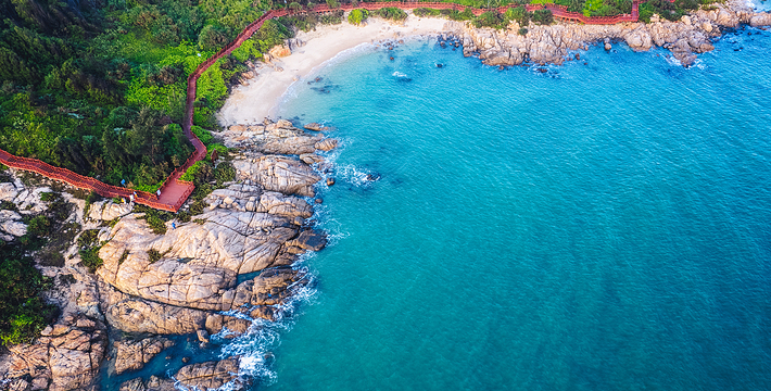 棋子湾位于昌江西部,在昌化镇北3公里处,距昌江县城石碌镇55公里。此湾东倚昌化岭,西连大海,东西长约20公里,呈S状,石多沙白浪静。该湾水清见底,沙细质软,洁白如银。海岸奇峰林立,怪石磷峋多姿,林木苍翠,山花烂漫,清泉欢畅,阳光明丽,四季如春,是难得的天然浴场,也是光浴和沙浴的理想之地。怪石嶙峋,色彩各异,林木茂密,绿草如茵,清泉欢歌,银色的沙滩与湛蓝大海面连成一片,让你的心灵享受飞翔。