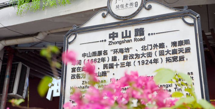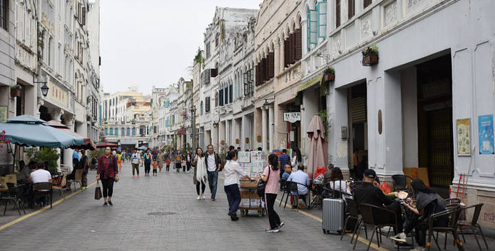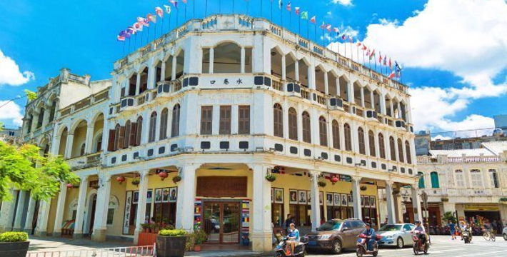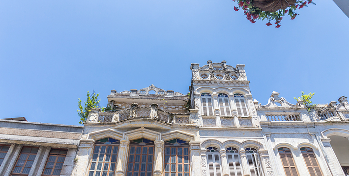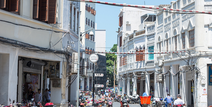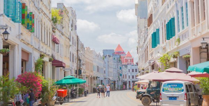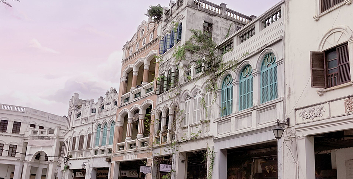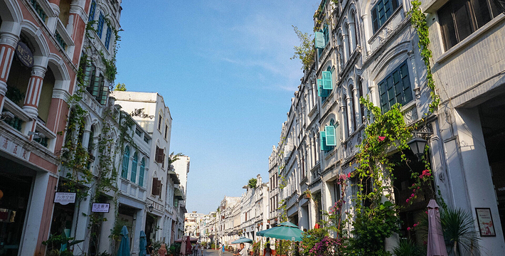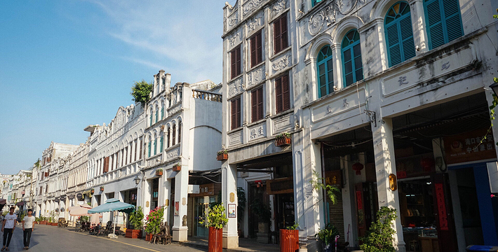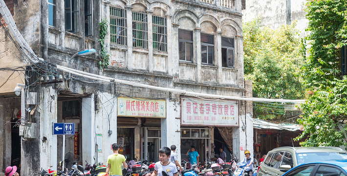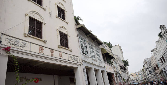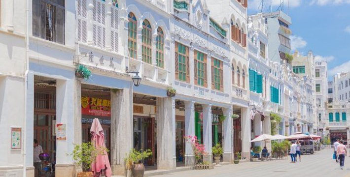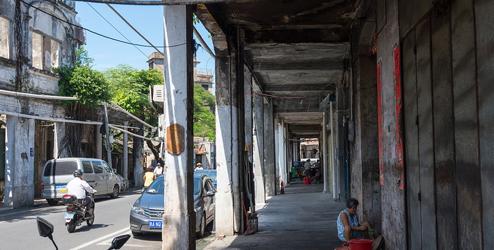 海口骑楼老街。首届“中国历史文化名街评选推介”活动在北京揭晓,海口骑楼老街榜上有名、独特性荣获首批十大“中国历史文化名街”称号。骑楼大多是上世纪初一批批从南洋回来的华侨借鉴当时的南洋建筑风格所建。骑楼外表乍看斑驳古拙,仔细欣赏时发现那些建筑上大多布满优雅细致的雕塑和洋派的装饰,很有些巴洛克的味道。骑楼楼层都不太高,两三层的居多,有些还保留着早前的商号,和凭栏、门窗等处的精美雕花。老街居住的传统模式里遗留了众多极为有趣的邻里空间,如露天戏台和社区活动空间合二为一的宗庙空间;室外随处可见的土地爷祭拜点,常年有人供奉;较大的室内茶室,多为老年人交谈聊天,消磨寂寞时光所用,茶室内人声鼎沸,俗称“老爸茶”等等。