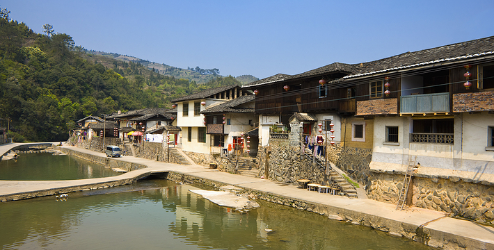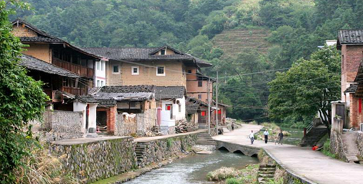 有水才有灵性,塔下村便是如此,不大的一个村子中间,一条小溪悠悠地流淌着。空幽的小山谷,建筑与水的完美结合,塔下村是一个客家人的村落,全村姓张,早年不少人“下南洋”,主要目的地是泰国和缅甸。事业有成后,回乡铺路搭桥,光耀门楣,因此不大的塔下村却有5座形态各异的桥。进村的3公里的柏油路,也是华侨捐建的。和粗旷的土楼相比,塔下的建筑则要显得柔媚得多。长满青苔的石阶,细细木版盖成的小楼,穿行错落老屋中的幽幽小道。让人不禁怀疑,时空是否已经错乱?