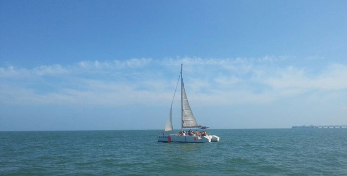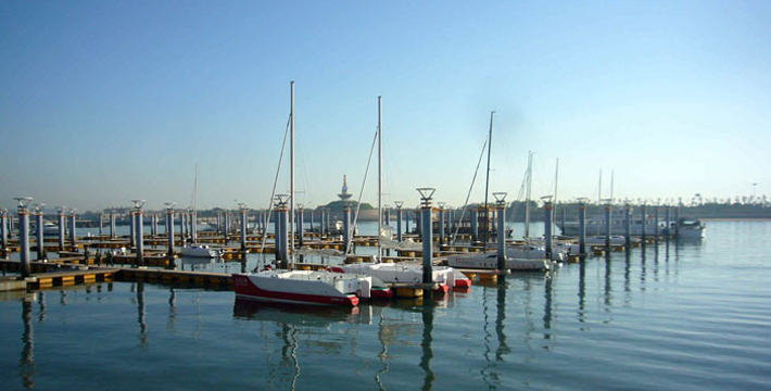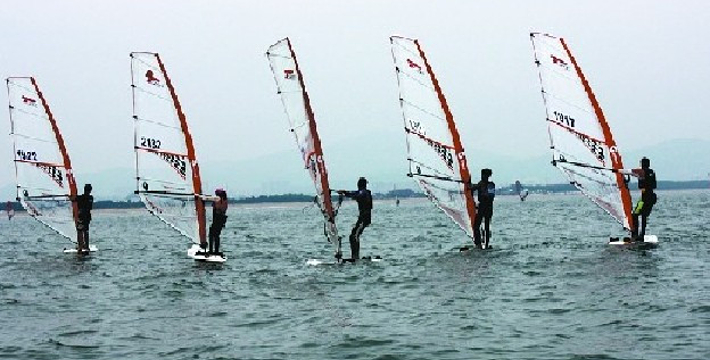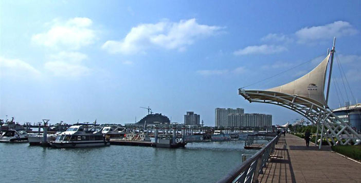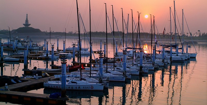 日照国际帆赛基地总面积106公顷,其中陆地面积65公顷,水域面积41公顷,是我市为承办 2005年欧洲级、2006国际470级世界帆船锦标赛而建设的基地设施,整个工程总投资约1.9亿元,主要工程内容有港池、护岸、护堤、浮动码头、小品、雕塑、灯光及包括已完工的17000平方米的帆船俱乐部、水上控制中心和船库丈量室,以及正在建设中的圣火台和服务中心等。