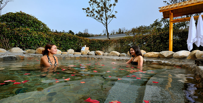 5.选择适应自身的高、中、低温度的温泉池,一般从低温到高温,每次不宜超过15分钟,及时补充水分。