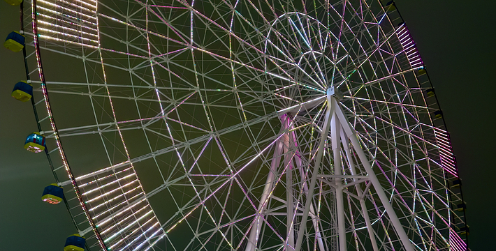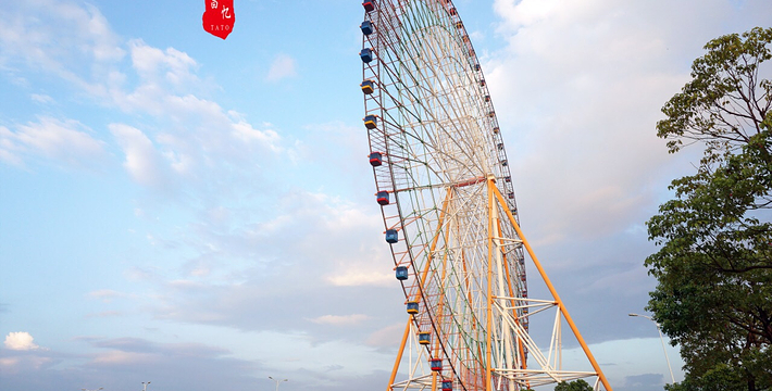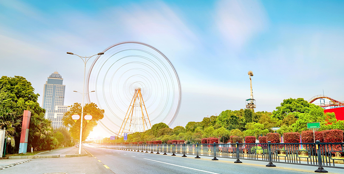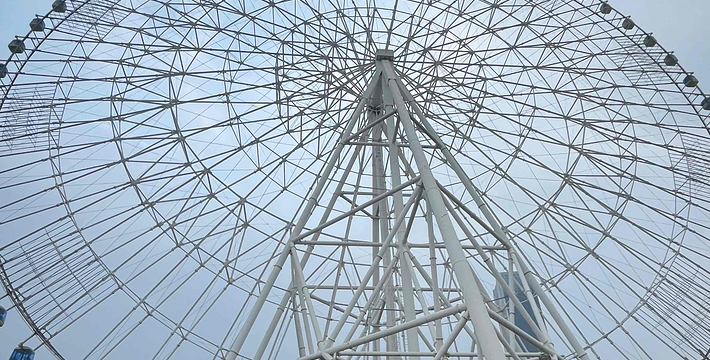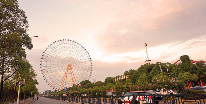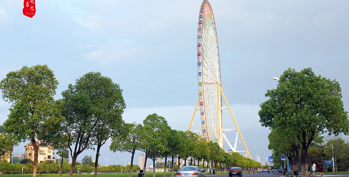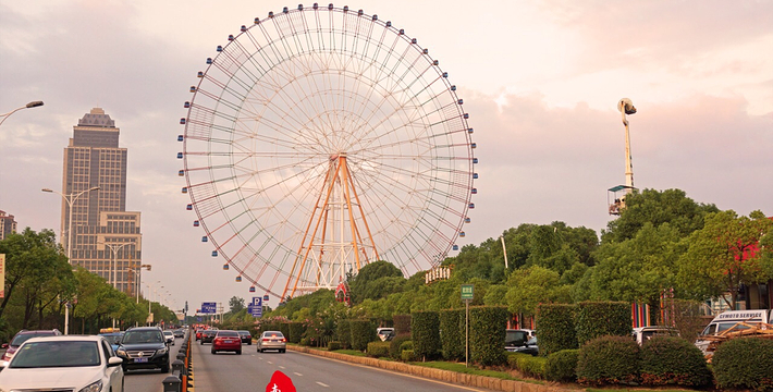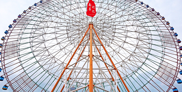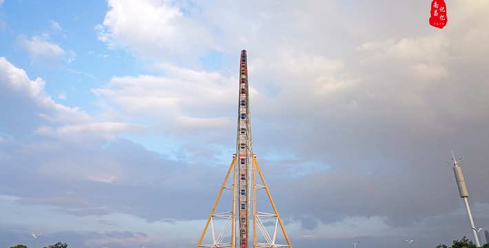 “南昌之星”摩天轮,又名南昌之星,位于江西省南昌市红谷滩新区红角洲赣江边上的赣江市民公园。高160米,同时在世界上仅次于新加坡飞行者(165米)的摩天轮,为南昌市标志性建筑。“南昌之星”摩天轮由国家煤科研究总院上海分院设计,轮面彩灯由六七千根LED半导体照明器件构成,全部亮灯后除了可以显示一座直径为153米的巨型彩色时钟,还可根据需要设定不同图案,建筑动工于2005年,于2006年竣工,投资总额达1亿元人民币。成为南昌的重要地标之一。“南昌之星”摩天轮位于江西省南昌市红谷滩新区红角洲赣江边上的赣江市民公园,是世界上第二高的摩天轮(”,高165米,超过了南昌之星摩天轮),南昌市标志性建筑。 该摩天轮总高程为160米,转盘直径为153米,比位于英国泰晤士河边的135米高的“伦敦之眼”摩天轮还要高。它设有60个太空舱,每舱可容游客6—8人,舱内配置了液晶电视、三菱冷暖空调,每小时将可容纳近千人“空中”旋转看南昌一江两岸的壮丽景观。60个太空舱分别代表60分钟的时间刻度,摩天轮将采用双供电与双动力系统,以保证游客安全,同时太空舱内还设有灭火器、对讲机及救生绳筒,万一出现故障,游客可沿绳而下,避免危险。摩天轮运转为匀速转动,但如有乘客在太空舱突发疾病,如心脏病等,通过对讲机与地面操作控制人员联系,可以调节运输速度,使病人快速抵达地面。