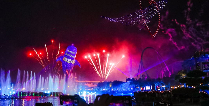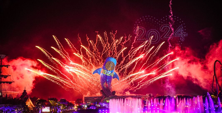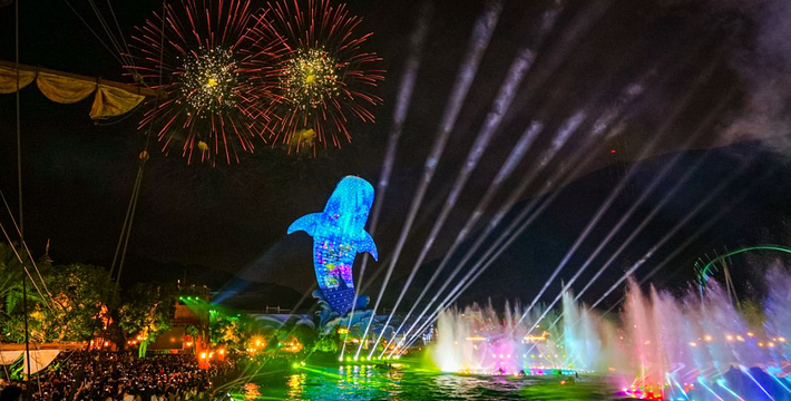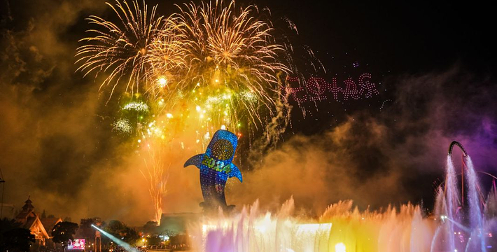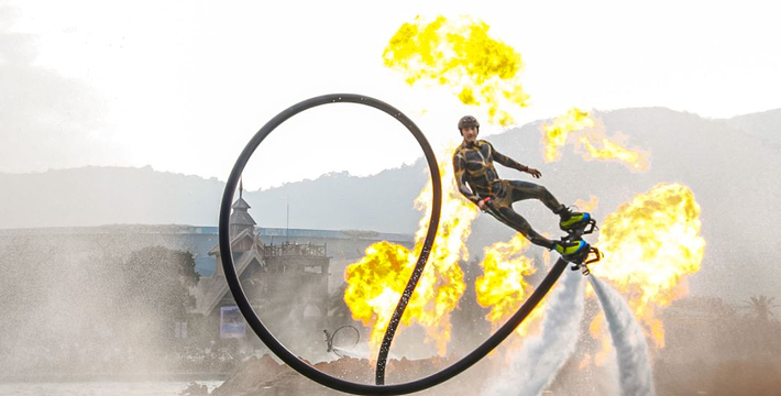“烟花幻彩横琴海”是一场集灯光、音响、影片、烟火和特技于一身的大型汇演,闪烁烟花照耀灿烂夜空,激情音响加动感喷泉效果,配合惊险水上飞人表演,带来强烈感官刺激!