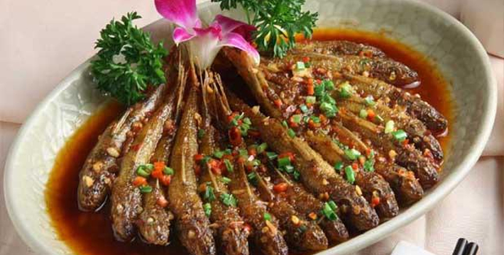 这里盛产鳜鱼、鲫鱼和“浪里白条”——翘咀白鱼,特别是棍子鱼,银鱼更是武宁水产之精品,而且还有许多传统名点名菜,如什锦汤,珍珠丸,玉芦烧等更使游客赞不绝口。