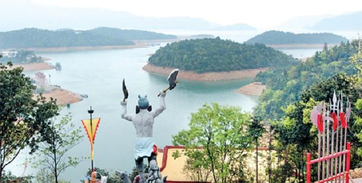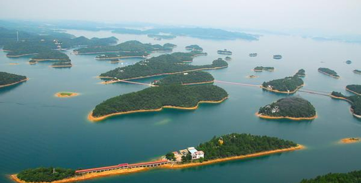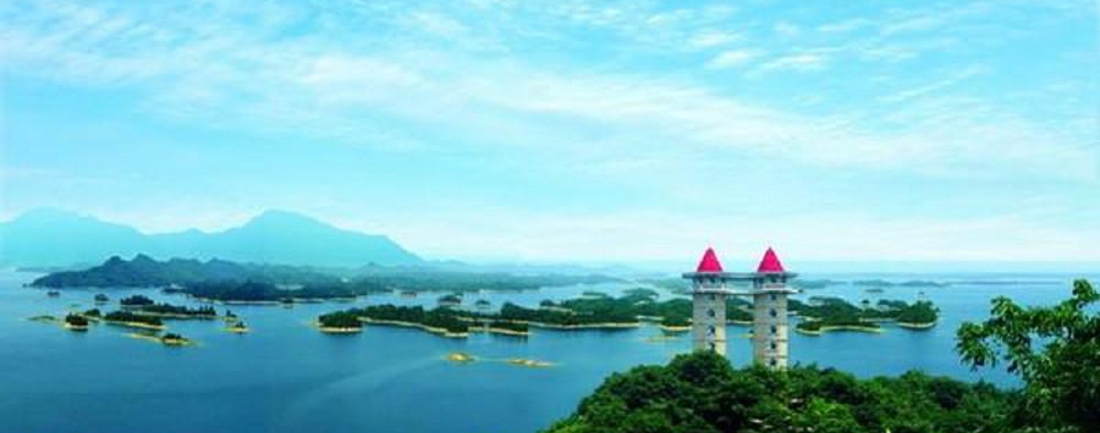 观湖岛上建有观湖亭和高七层的观湖双塔,登临其上,可观湖中美丽风光和四周如莲的几百个岛屿,游客可以逐层眺望湖中美景。