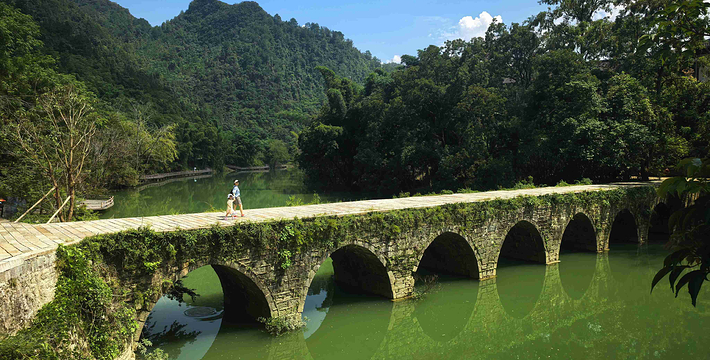 响水河上有一座古桥,这就是著名的小七孔桥。此景区的得名亦因此桥。此桥建于清代道光十五年,(公元1835年)桥下七孔,横跨响水河。