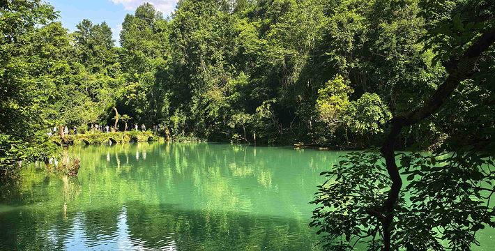 水上森林,长约600米,分上下两段。河谷里丛生着茂密的乔木和灌木,形成一道翡翠屏障,可谓是“水在石上淌,树在水中长”的奇景。