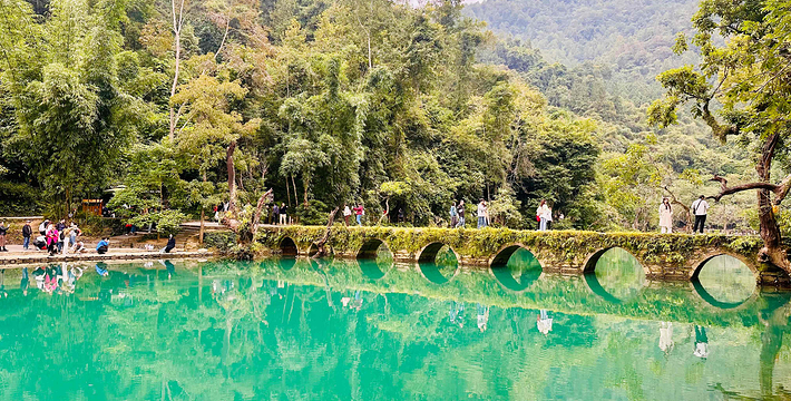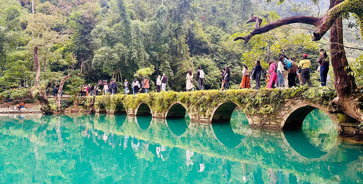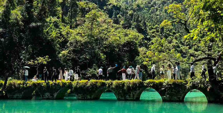 小七孔风景区位于贵州省荔波县城南部30余公里的群峰之中,距大七孔景区5公里,景区全长7公里,面积约10平方公里,有百多个游览景点。是集山、水、林、洞、湖、瀑为一体的原始奇景。1988。因其特有的古朴,幽静等特点令中外游客赞不绝口。联合国组织的专家组曾到这里考察后评价:“小七孔风景区响水河上横跨着一座青石砌成的七孔拱桥,为道光十五年所建。”“小七孔风景区”因此得名,由于景区特有的奇、俊、秀、古、雄等自然美,加之饱含浓郁的布依、水、苗、瑶等民族风情,每年吸引近百万中外游客前来旅游。