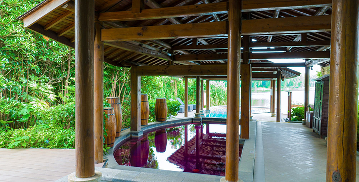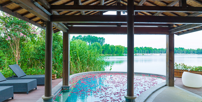 水墨湖州,倾听一泓温泉,月亮温泉为你揭开它神秘面纱。依临太湖南畔,置身月亮温泉,听那如天籁、如鸣琴、如心的声音,静静品味这天赐奇泉,慢慢享受这修身养性的美好时刻。月亮温泉位于湖州南太湖旅游度假区内,依临指环标志喜来登月亮度假酒店旁,由上海飞洲集团投资兴建,集温泉养生、SPA理疗、休闲度假、观光旅游为一体的综合型温泉旅游度假酒店,是继湖州喜来登月亮度假酒店之后又一巨作,她延续了喜来登月亮酒店的尊贵、高雅、国际化的品质,但又多了一份私密、柔软、温情和梦幻的色彩。 月亮温泉以东南亚风情建筑风格为主,占地面积为20000平方米,充分利用自然景观资源,一草一木,一山一石,讲究人与大自然零距离接触。温泉之上佳者,一在于天然,二在于水质,而月亮温泉正具备这二点,通过浙江省煤炭地质局、省国土资源厅相关专家多次考证和实验报告,月亮温泉属于重碳酸钙型含偏硅酸的氟温泉,温泉水取自“小梅山”天然温泉水,无色、无味、透明,水质细腻,池内水温在37℃-45℃之间,水质中含有锶、碘、硒、氟等十几种微量元素,尤其是硒和氟含量较高,对人体具有一定的医疗和美容保健价值。整个温泉以南太湖沿岸为景,由温泉主楼接待中心、室内温泉中心、汤屋别墅苑和室外露天温泉区组成;其中一期室内温泉中心建筑风格形似“月亮”状水晶玻璃球顶,室内由26个特色迥异温泉泡池遍布在热带雨林中,包含五行养生区、有机花草区、美容养颜区和亲亲鱼疗区等,在轻音妙曼、芳香袅袅的“球顶”内,享受泉水、花瓣、绿叶和泥土的亲抚,吮吸自然森林里原始植物所散发出的清新气息;温泉主楼中心设有16间高端智能化SPA理疗和足浴房,每个房间设有窗景阳台、独立洗浴,所有spa;容纳50-80人豪华休息厅,每个席位配备ipad电脑,实现无线网全覆盖,休息厅提供免费的水果饮料和点心。一楼设有商务休闲吧和中式餐厅,提供养生简餐、自助餐、西式点心等;另外二期包括室外大型露天温泉区、8间汤屋别院和39栋别墅,其中8;露天温泉区由几十种不同*能动感水疗温泉泡池组成遍布在太湖边,置身泉池中,太湖四季之景尽收眼底,烦忧尽忘。提倡高端服务理念,让每一位客人在体验温泉旅游融入休闲、健康、时尚生活的同时感受 “御”式尊贵服务。