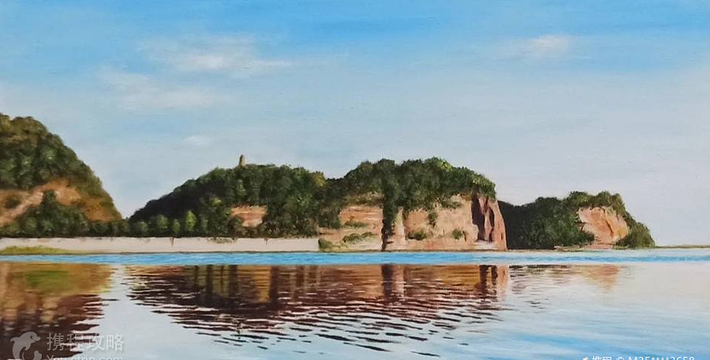 隐型睡佛 “巨型睡佛”又称“隐型睡佛”,位于乐山城侧的三江(岷江、青衣江、大渡河)汇流处,形态逼真的佛头、佛身、佛足由乌尤山、凌云山和东岩连襟而成,南北直线距离约1300余米,头南足北仰卧在三江之滨。巨型睡佛之“佛头”,乌尤山为“佛头”,景云亭如“睫毛”,山顶树冠各为“额、鼻、唇、颌”,富有神采;凌云山栖鸾、集凤两峰为“佛胸”,灵宝峰是其“腹和大腿”、就日峰是其“小腿”,东岩南坡则为其“腿”。令人叹为观止的是,举世闻名的乐山大佛正好端坐在“巨型睡佛”腋部的深坳处,似乎正好应验了唐代雕佛者寓意的“心即是佛”和古代民间“圣人出于腋下”之说,形成了“佛中有佛”的奇观。“巨型睡佛”的形成,究竟是天造地设,还是古人匠心?一时众说纷纭,为“巨型睡佛”增添了更加神秘的色彩。在此处望南眺望,但见碧水云天之处,巨大的佛体横空出世,安详自如平卧江面,雄姿健影妙趣天成,给人一种美的享受。