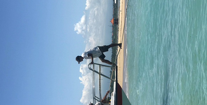 去蓝梦岛的游船有很多公司经营,比较有名的是“快银号”、“小黄”等等。不同公司的不同就在到达蓝梦岛时,上午并不在沙滩上玩,而是在各自的水上浮台上玩,公司越大,浮台越大,所能玩的项目相应越多。