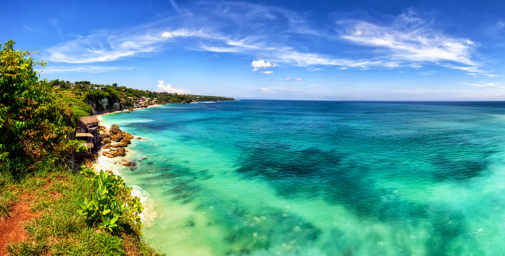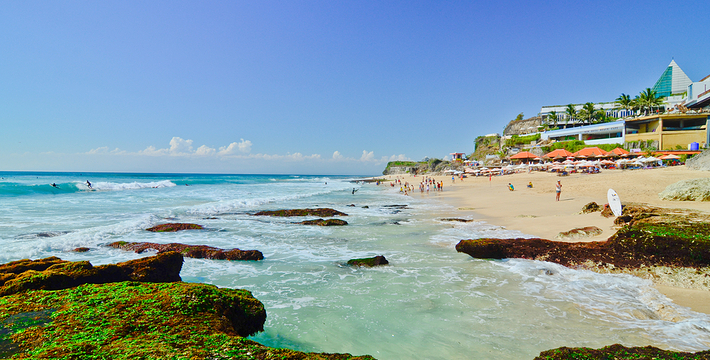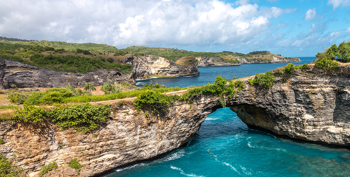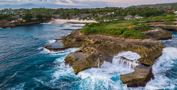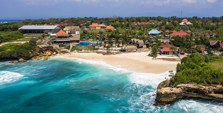 蓝梦岛海水清澈无污染,水下生物放眼望去,清晰可见,岛上椰树茂盛,居民生活安详和乐。岛上大多数居民以种植海藻为生,这里也是巴厘岛海藻养殖基地。岛上可游玩地包括潜水、水上冲浪等,推荐住宿蘑菇湾,这里的蘑菇海滩也不错,其他看点还包括红树林、努沙切宁安岛(Nusa Ceningan),还可以眺望阿贡火山,岛上有租车服务,摩托车100000RP每天,饮食推荐在住宿点解决。