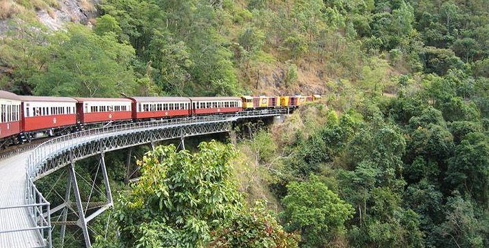 库兰达热带雨林公园位于北昆士兰省占地40公顷的一个热带雨林旅游中心,整座热带雨林被列为世界自然遗产保护的对象之一,是到凯恩斯的必游之地。热带雨林中有200多种鸟类,还有澳洲60%以上的蝴蝶品种,有存在了1.5亿万年的活化石级的羊齿科植物。充分让人感受像《侏罗纪》探险电影里的热带雨林,它告诉我们不仅电影中有古老的雨林,自然公园的雨林也是神秘而又充满刺激的。库兰达热带雨林自然公园提供三种多样化的游玩方式:乘坐独有的两栖水陆两用军车穿梭热带雨林和热带水果园,欣赏帕玛吉丽土著民族舞蹈表演及走进黄金时代走廊以及观赏考拉和野生动物园。