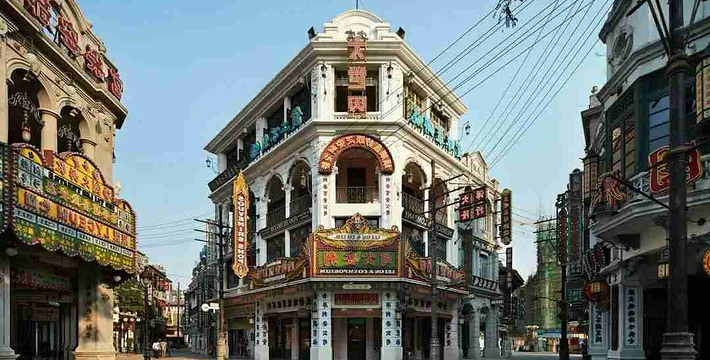 观澜湖华谊冯小刚电影公社,又称百年记忆公社,这里全景式还原了上世纪百年间黄河流域、长江流域、珠江流域三大地域的城市风貌、街区风情、建筑特色与民俗活动,努力恢复一批已经消失的遗产型建筑。时间跨度百年,地域纵横南北,当之无愧地成为近现代中国老建筑博物馆,置身其中仿佛穿越百年历史长河,尽览中国近现代的广阔历史场景和民俗风情。同时,它又是一个“乌托邦”式大型电影实景拍摄及旅游景区。因许多影视作品在此拍摄,让银幕里的世界触手可及,创造出强烈的年代感和带入感。近年众多当红明星网红前来拍摄和举办活动,为景区赋予了新的活力