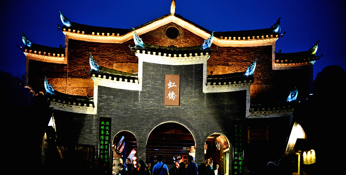 与民族一条街竖横交错,互为辉映,构成了古城市井风俗画面的,便是虹桥风雨楼。虹桥横卧于沱江之上,风雨楼以它的壮观和俊美拔然而起,这其实就是成了一道重叠的风景,这道风景,由下而上、由古而今穿越着六百多年的历史。