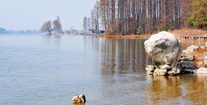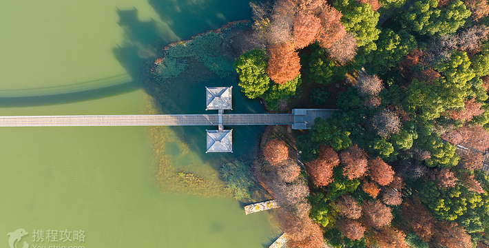 落雁景区与磨山景区隔湖相望,占地面积10.24平方公里,其中水域面积4.29平方公里,湖面广阔,湖岸曲折,港叉交错,山水相依,孤岛星罗,湖草茵茵,芦苇密集,水鸟聚集。