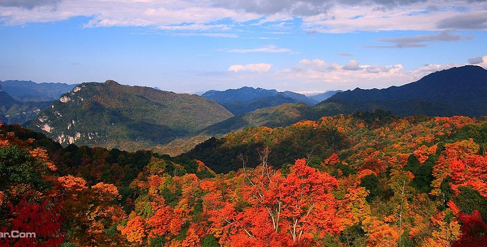 古有“巴西外户,蜀北岩疆”之称,今有西部生态旅游新亮点、川陕渝森林旅游“金三角”之誉——米仓山。景区位于四川省东北边缘,东、北与陕西省南郑县相邻,西靠广元市旺苍县,同光雾山相毗邻,面积40155公顷,森林覆盖率为97.3%,活立木总蓄积240万立方米,每立方厘米负氧离子含量3万多个,是秦巴地区最重要的地质博物馆和生物基因库,兼有平原气势和水乡风貌,其山秀如峨眉,林幽似青城。有贾郭山、天然画廊、黑熊沟、香炉山、牟阳故城、巴山温带珍稀植物园等精品景点。景区内动植物资源丰富,种类繁多,有国 家 级一、二级重点保护植物17种,动物32种,是名副其实的“秦巴山区生物基因库”,2007年9月被中国经济林协会评为“中国红叶之乡”。
