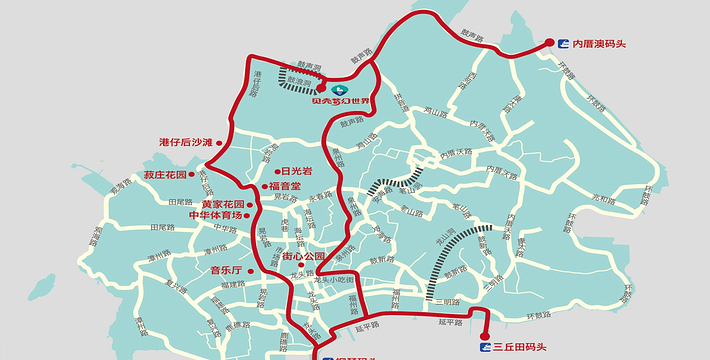 厦门到码头:从厦禾路出发,行驶到湖滨东路,进入湖滨东路。沿湖滨东路走0.7公里并左转到湖滨南路,沿湖滨南路走3.5公里并向西直行到鹭江道,沿鹭江道走1.5公里并右转,走10米并向西南直行到轮渡码头,坐轮渡进岛。