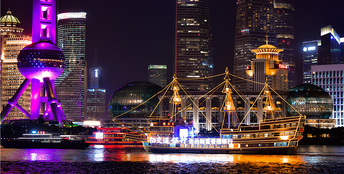 外滩夜景是来到上海不能错过的美景,在游船上观看,更是别有一番乐趣。