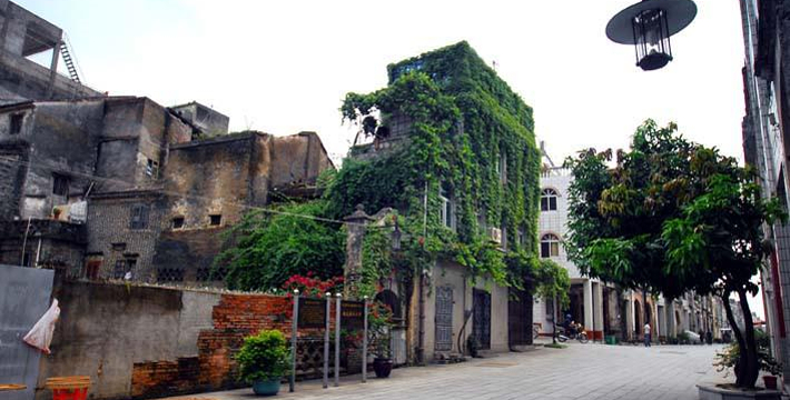 老街的建筑有自己的地域特色,又吸收了岭南建筑的特点,还吸取了西方建筑的一些艺术风格,前店后居的建筑格局、中顶铺、拖笼门、西式女儿墙装饰.