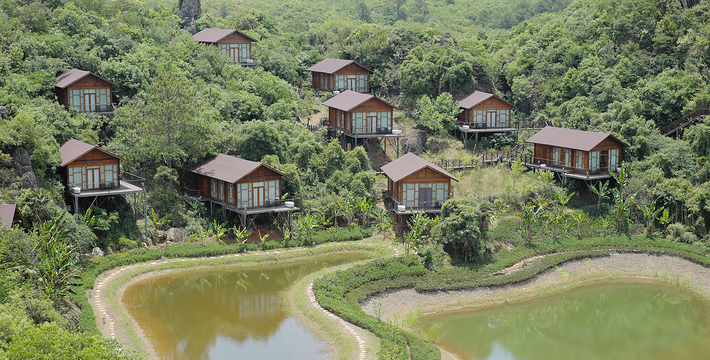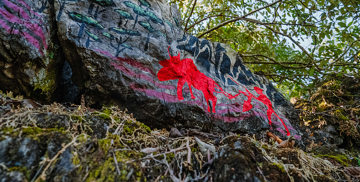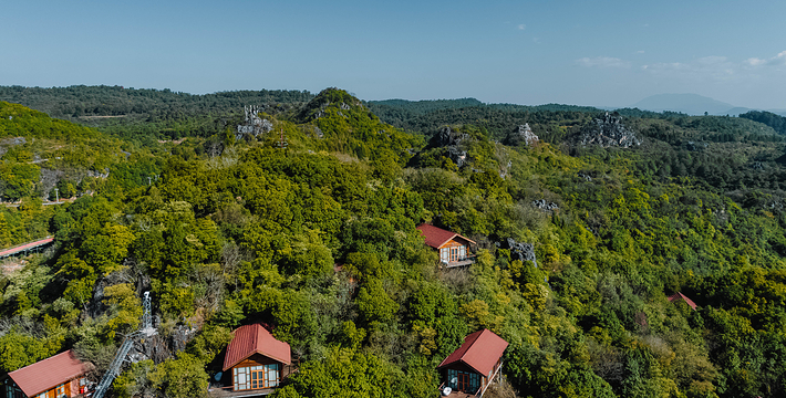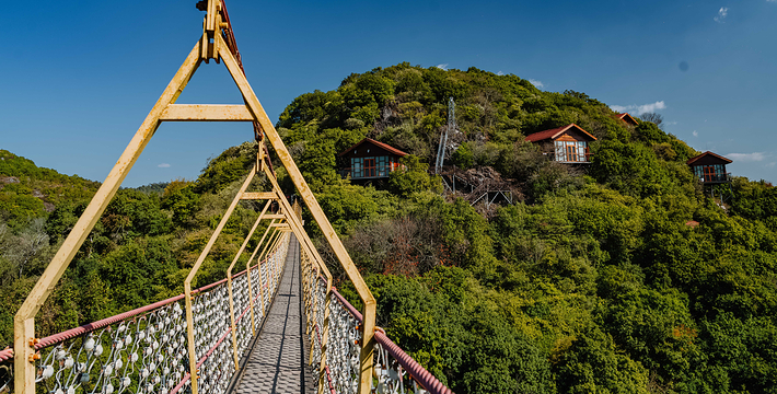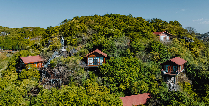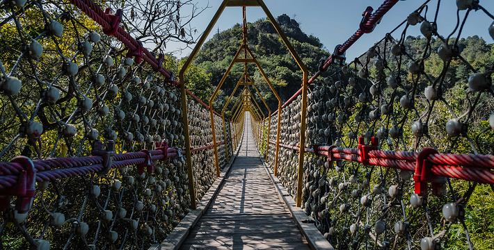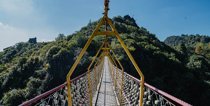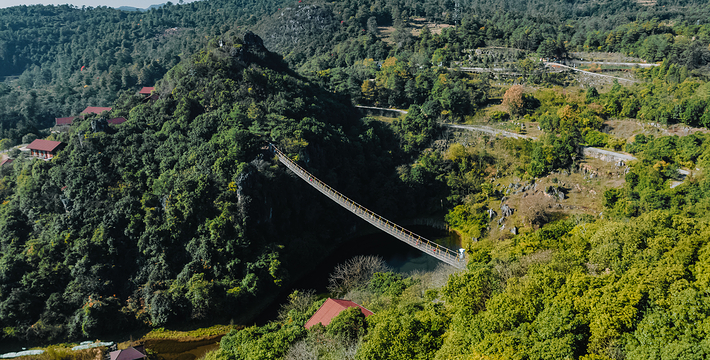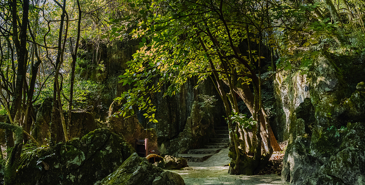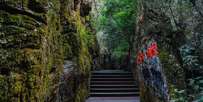 位于寨门入口左侧原始森林之中,蜿蜒曲折的神秘栈道,沿途俊美的自然风光,种类繁多的树木植被 ,沁人心扉的天然氧吧,丰富多彩的民俗展示,对歌台、观景亭、祭祀点等全程2公里。虎啸山林景区:位于进入可邑古村道路的左侧山顶, 18.2*7.2*17米高的巨大威猛石虎、傲视远方、守 卫山寨,宽大的基座四周雕刻着虎的图腾传说。