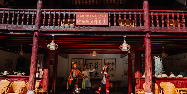 可邑古村已有360年的历史,彝族传统民居、民族文化和古朴的民风民俗,在陈列室观看反映阿细民族 故事的微电影;在阿细跳月广场体验观看节奏明快、热情奔放的《阿细跳月》大型歌舞表演;在非遗传承四合院领略浓缩着阿细文化精华的《阿细的先基》演出,感受古朴的阿细民族文化。