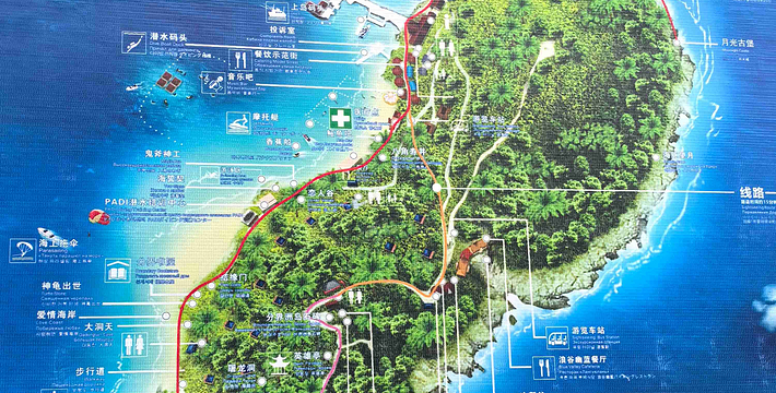 5A级旅游景区——海南分界洲岛旅游区是一个集海底、海上、空中为一体的立体型、多资源旅游景区,由山、海、岛相融合的独特资源构成,拥有众多独特自然景观,景观特色鲜明,吸引力强,游客可以海陆空立体体验海洋旅游项目,旅游项目多样化强,游客参与度高。分界洲岛海洋环境资源优越,可提供潜水(有海豚潜水、堡礁潜水、远海潜水等)、海钓、海底潜艇观光、游艇、海豚表演、鲸鲨观光、珊瑚馆观光、酒店(近距离、纯海景木屋)、餐饮、海岛婚礼(中国海底婚礼首创地)等多种旅行服务。被称为是“心灵的分界岛”、“坠落红尘的天堂”、“一个可以发呆的地方”。 因所处的地理位置特殊、气候特征独特和小岛地貌神似以及地域文化特色鲜明等,分界洲岛有“美女岛”、“爱情岛”、“无名岛”、“分界岛”等称谓,是一个美丽的灵秀小岛。海蓝、沙白、石奇、木秀、山峥、草嵘、花艳、峰俊、岩俏,雄奇与秀美相得益彰,这就是分界洲岛独具特色的自然美。