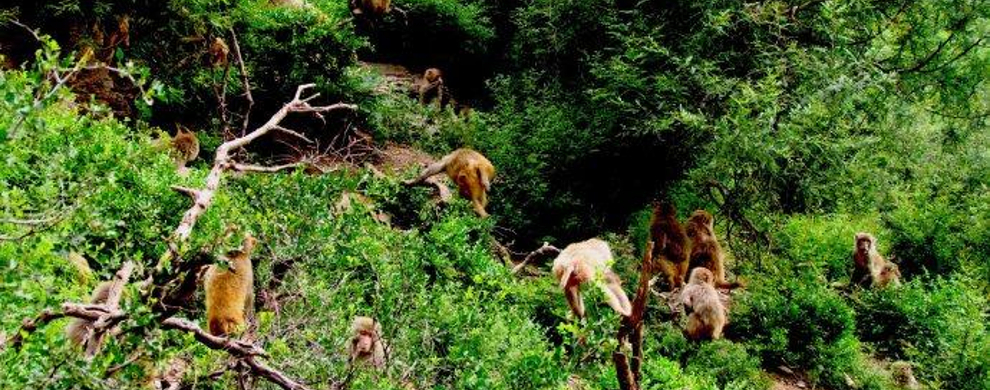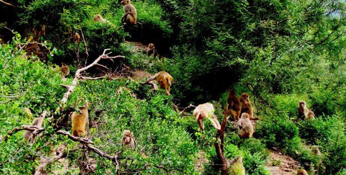 以自然景观为主,以猕猴、温泉为特色的山岳型风景区。五龙口现有猕猴12大群3000余只。