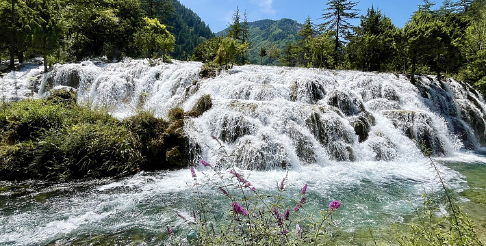 夏日,九寨沟掩映在苍翠欲滴的浓荫之中,您可以去五彩池赏杜鹃花,去诺日朗观瀑布,体会夏日清凉。