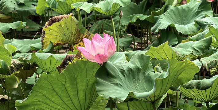 藕花深处建于1931年,得名于李清照的“兴尽晚回舟,误入藕花深处”句。在大片湖水的辉映下,蜿蜒小溪,曲桥清流,别有情趣。