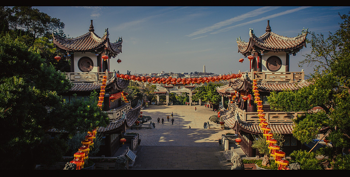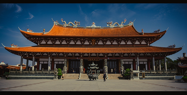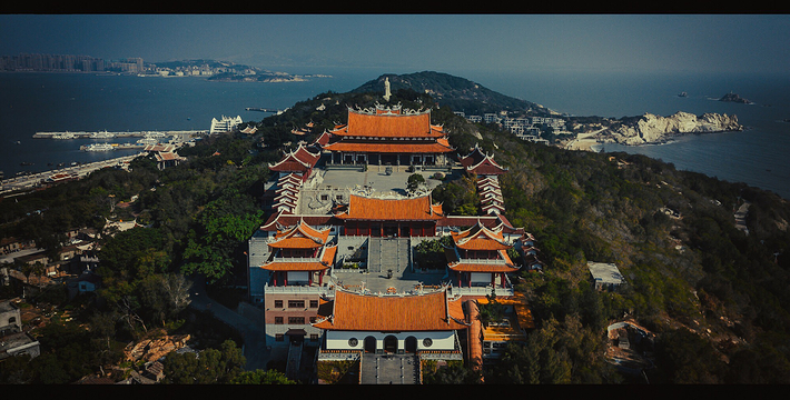 湄洲妈祖庙是全世界二千多座妈祖庙(宫)的祖庙,建于宋初。开始仅"落落数椽",名叫"神女祠",经过多次修建、扩建才形成规模的。如今,湄洲妈祖庙不但重显光彩,而且建筑规模更加富丽堂皇。目前祖庙建筑群是以前殿为中轴线进行总体规划布局,依山势而建,形成了纵深三百米,高差四十余米的主庙道,从庄严的山门,高大的仪门到正殿,由323级台阶连缀两旁的各组建筑,气势不凡。在祖庙山顶,还建有14米高的巨型妈祖石雕塑像,面向大海,栩栩如生。伫立山顶,极目远眺,山海茫茫,水天一色;回望山下整个庙群尽收眼底,构成了一幅瑰丽壮美的山水画,宫殿分为牌坊、山门、圣旨门、钟鼓楼、太子殿、梳妆楼、天后宫等。