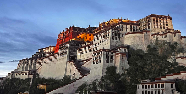 布达拉宫在西藏拉萨西北的玛布日山上,是著名的宫堡式建筑群,藏族古建筑艺术的精华。布达拉宫始建于公元7世纪,是藏王松赞干布为远嫁西藏的唐朝文成公主而建。在拉萨海拔3,700多米的红山上建造了999间房屋的宫宇——布达拉宫。宫堡依山而建,现占地41万平方米,建筑面积13万平方米,宫体主楼13层,高115米,全部为石木结构,5座宫顶覆盖镏金铜瓦,金光灿烂,气势雄伟,是藏族古建筑艺术的精华。