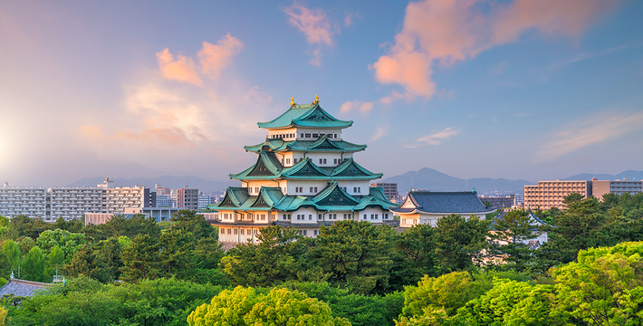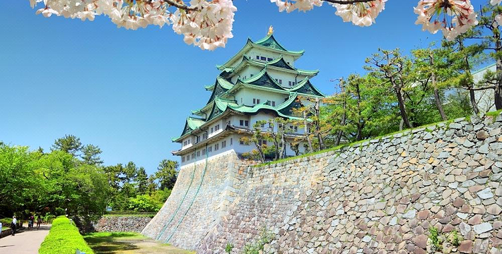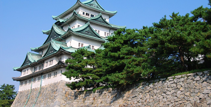名古屋城也被称作名城,是国家指定史迹,在日本名城百选之中名列第4位。关原之战后,一统天下的德川家康、织田信长曾经的出生地,废城那古野城为址,为自己的九儿子修建名古屋城,并以天下普请为名,向众大名发出了协助筑城的命令。加藤清正、福岛正则等人为示忠诚纷纷出力,不到两年时间就建成了这座德川家三代世袭的名古屋城,现在在名城公园内还立有加藤清正搬运石块的铜像。