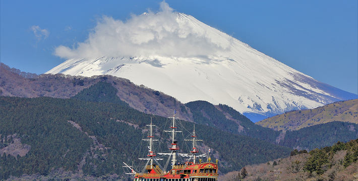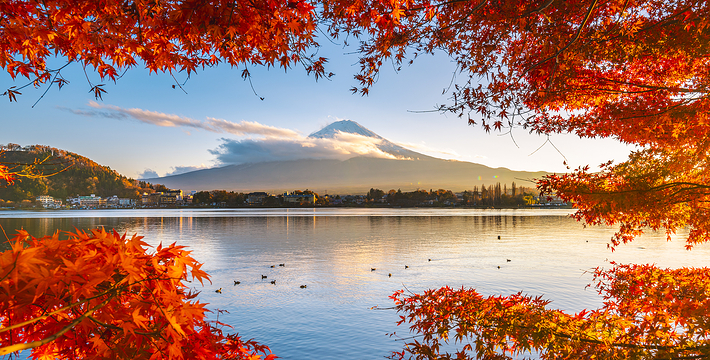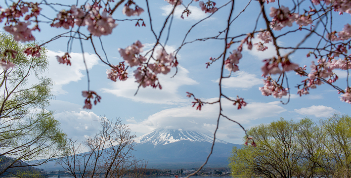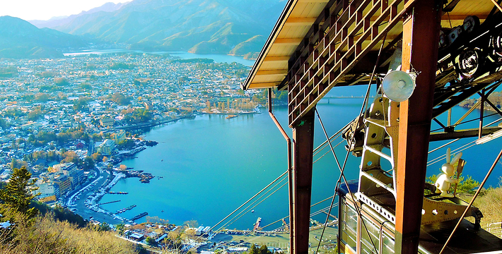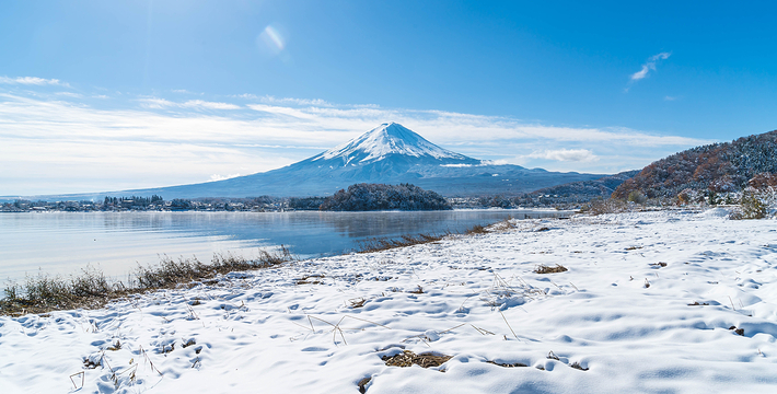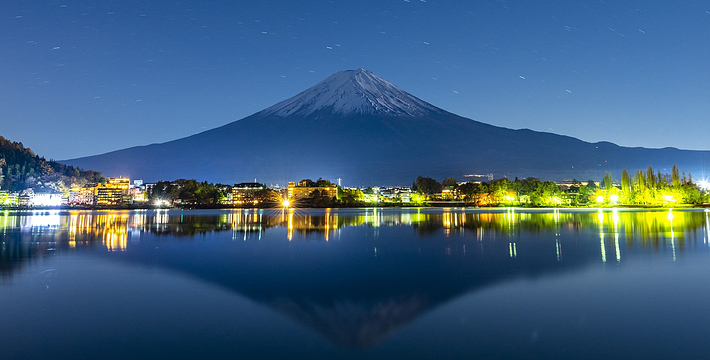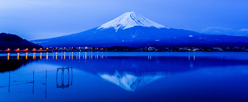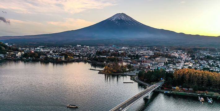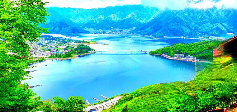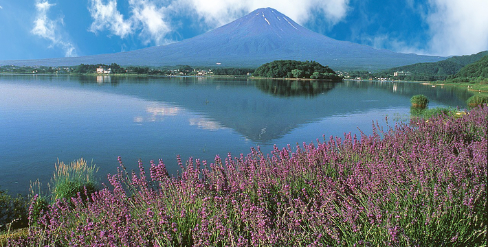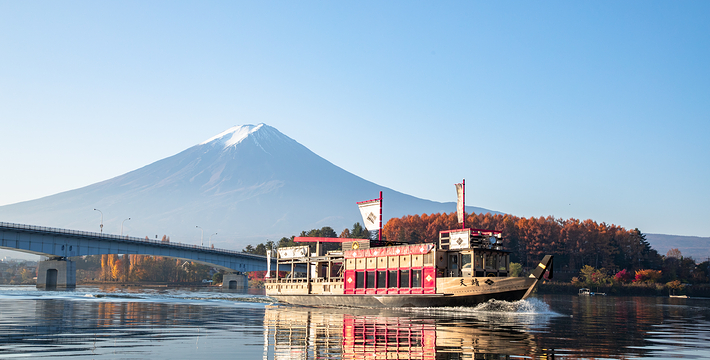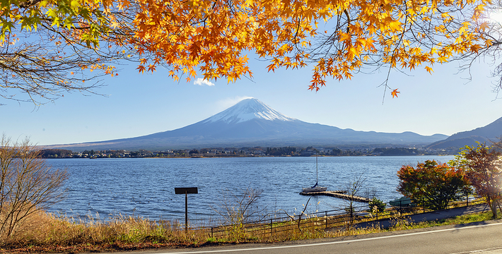 河口湖位于富士山脚下,为富士五湖之一。湖畔旅馆环绕,天气晴朗时湖中富士山倒影相映为一绝景。