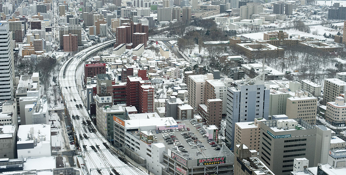 一座90.38米高的电视塔拔地而起。建于1957年,配合札幌代表性的红与绿,札幌电视塔是大通公园的地标建筑,也是这座城市东西南北的分界点。除了巨大的时钟显示屏,和东京塔等地标建筑一样,从距离地面约90米的地方,可以将这座城市的美尽收眼底。观景台上还有餐厅和礼品店等设施。