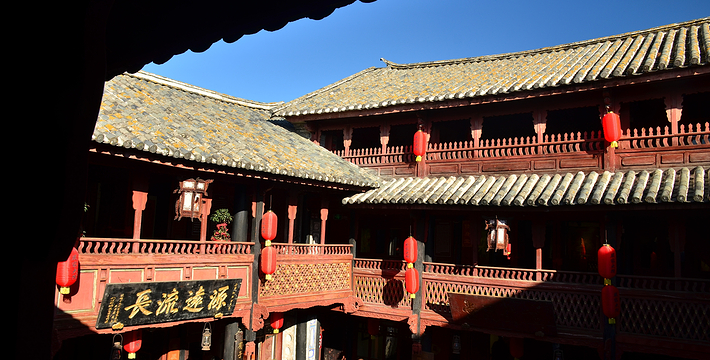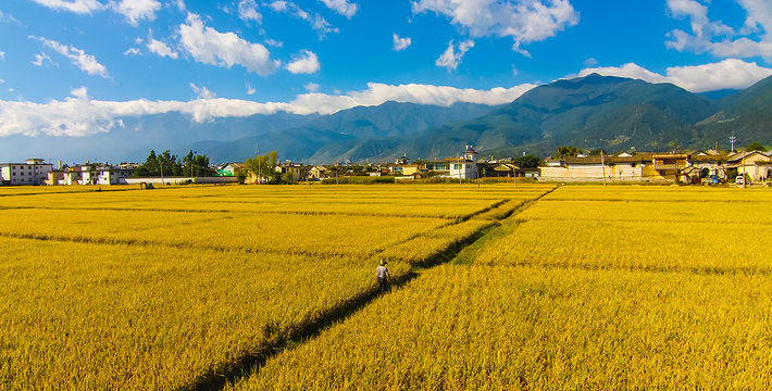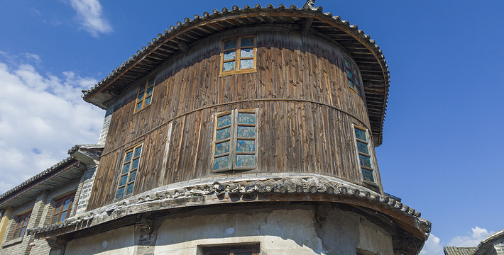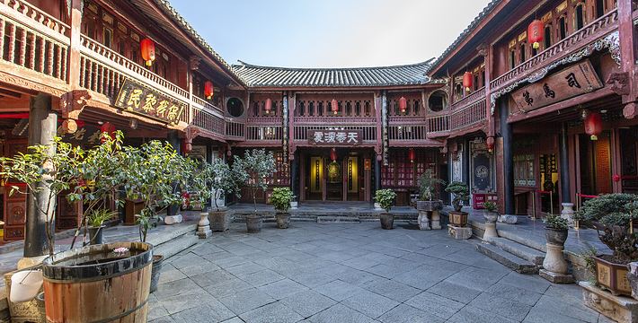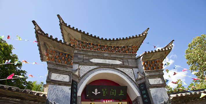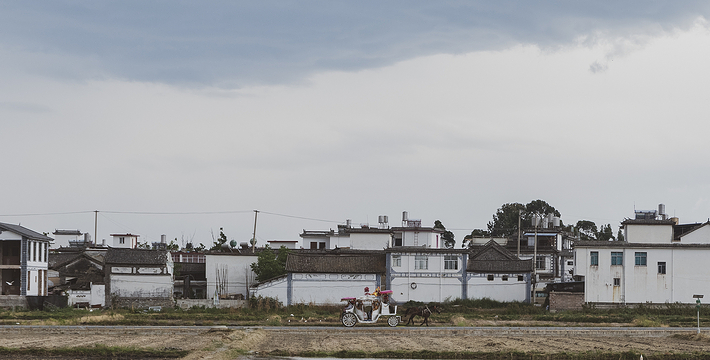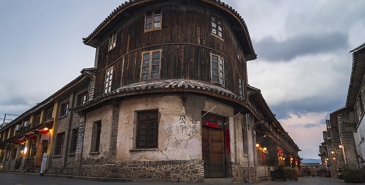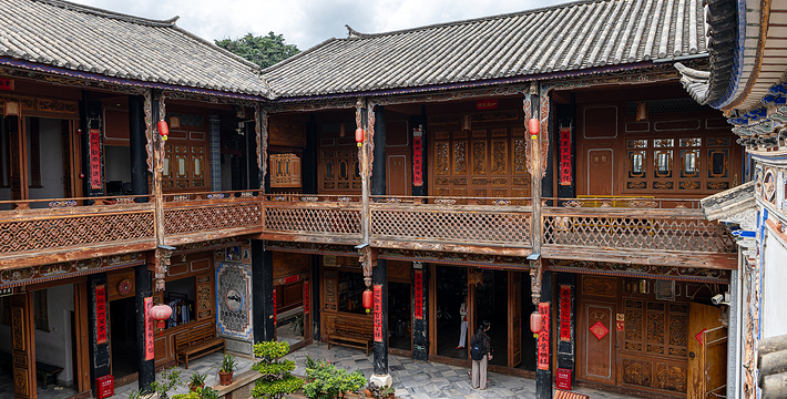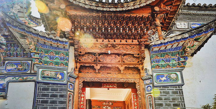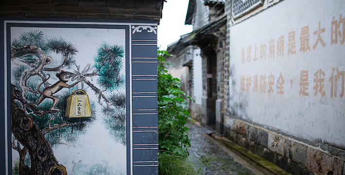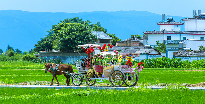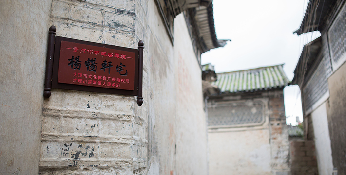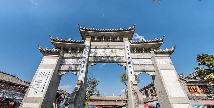 喜洲位于大理古城以北18公里处,东临洱海,西枕苍山,喜洲是重要的白族聚居的城镇。从布局上看是典型的“三坊一照壁”及“四合五天井”的白族庭院格局。这些民居雕梁画栋、斗拱重叠、翘角飞檐、门楼、照壁、山墙的彩画装饰艺术绚丽多姿,充分体现了白族人民的建筑才华和艺术创造力。一到喜洲,首先见到的是村头那两棵枝叶繁 如叶盖的大于树。这是在我国北方难得见到的一种乔木,俗名又叫万年青,学名是高山榕树。白族人认为,大青树是一个村庄兴的象征,因此又把它称作“风水树”。大青树是一个古老的白族村庄都有少不了有自己的风水树。这种树通常与戏台一起组成村民们的群体活动中心。喜洲村头的这两棵树,年代已经很古老 。传说 这是两棵一阴一阳树,一棵萌发另一棵落叶,周而复始,交替繁荣;一棵结果另一棵永不结果。劳动间歇时,村民常在树萌下的小憩;“绕三录”的长蛇阵般的队伍要绕着它狂着它狂欢;就是村上的人死了,送葬的人群也要朝着它绕一周,并把纸幡插在树下烧毁,藉以寄托死者对村庄的依恋。不远处东北角的村在里也有一棵老太太青树。每当秋天到来,常栖满了雪白的鹭鸶,这是喜洲特殊性有的景观。